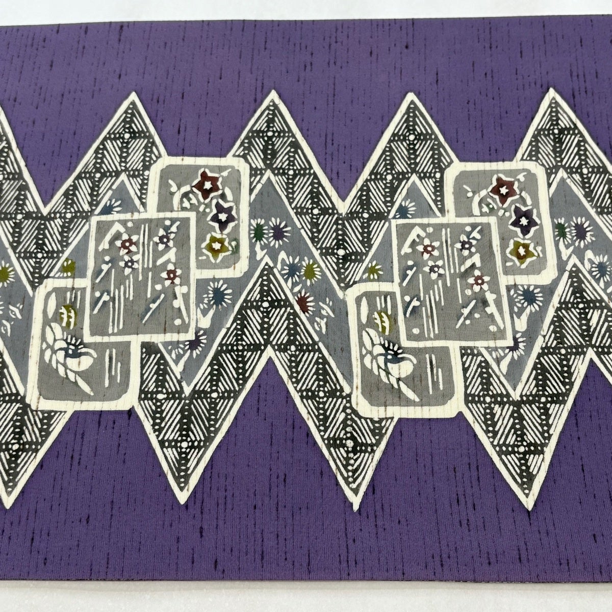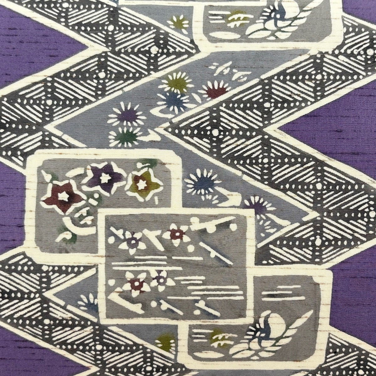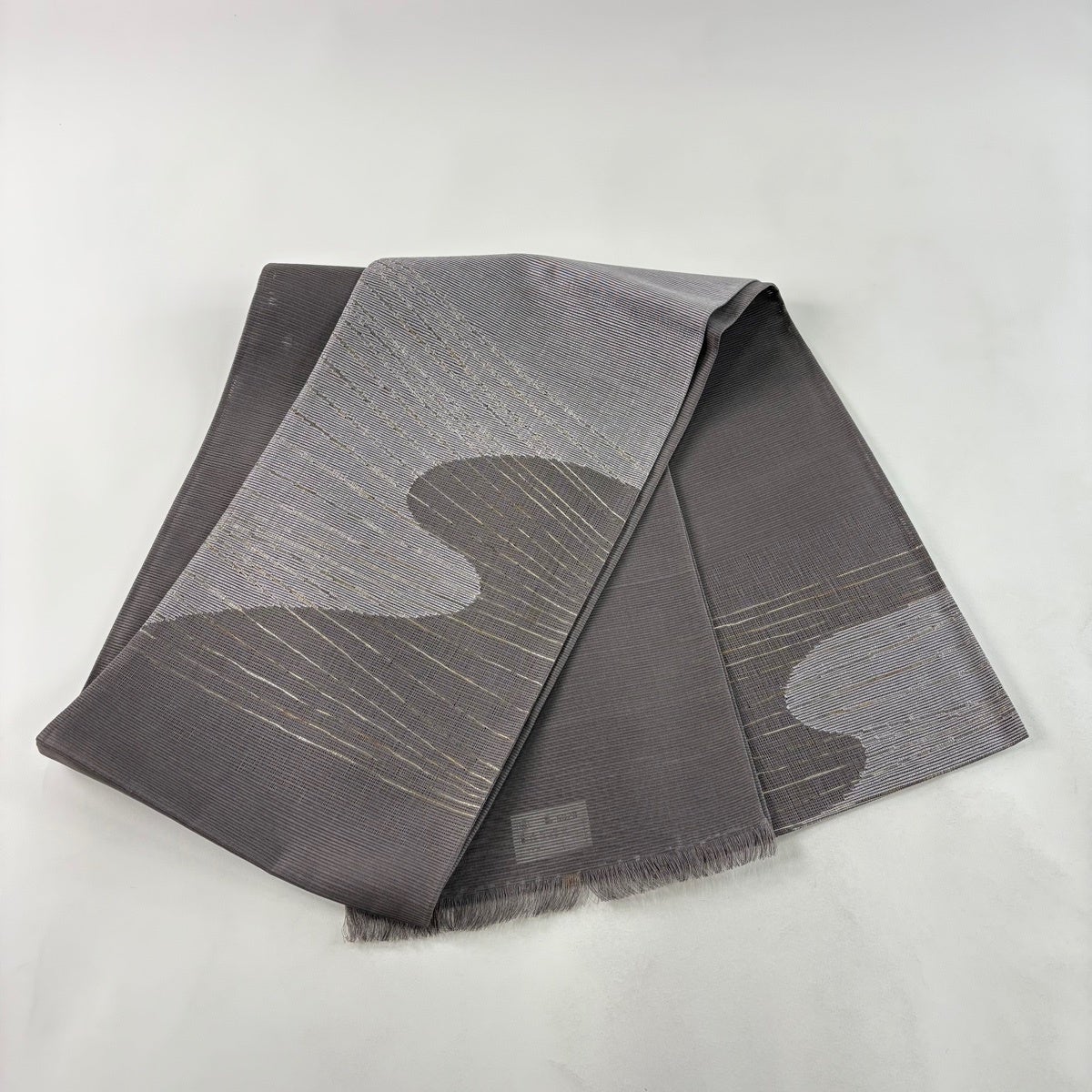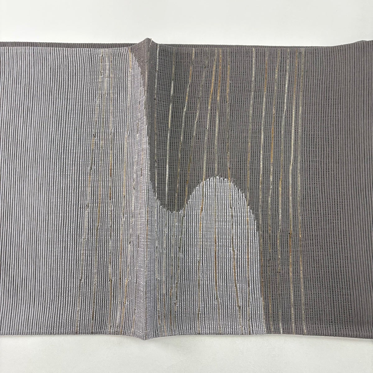 【美品】 袋帯 秀品 証紙あり 夏帯 絽 幾何学模様 流水 箔 灰紫 お太鼓柄 正絹