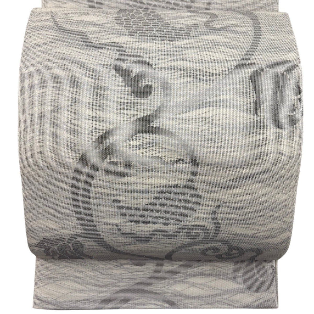 【美品】 袋帯 名品 葉と実 蔦 金彩 箔 灰白 六通 正絹