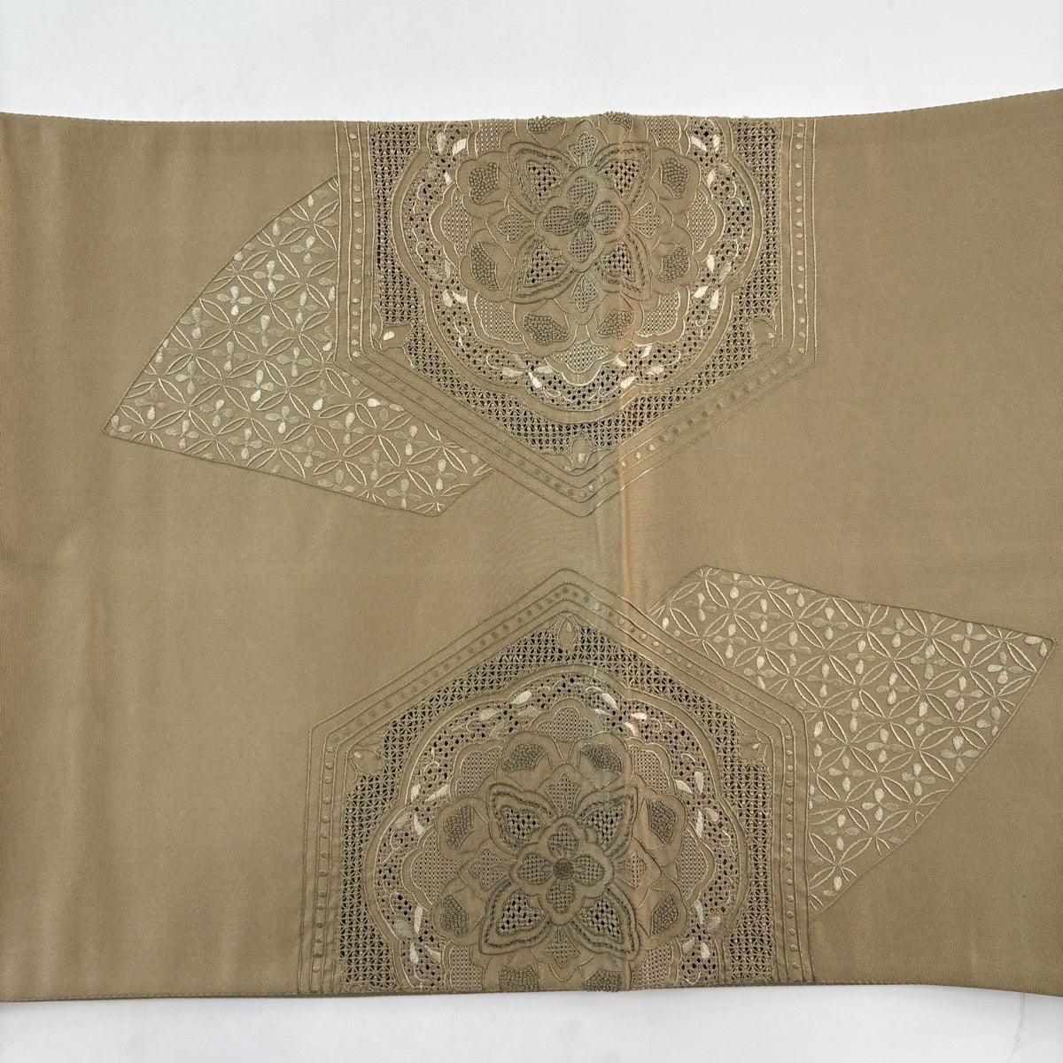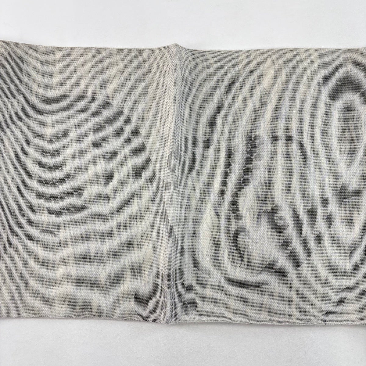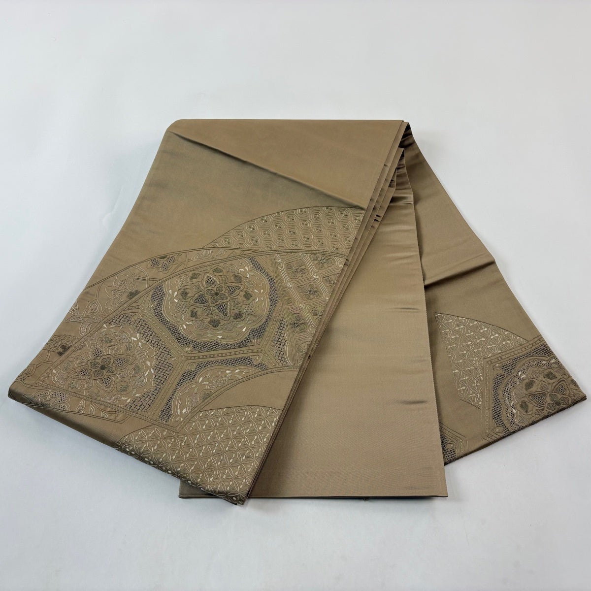 【美品】半幅帯 秀品 博多織 証紙 草花 幾何学模様 灰茶 正絹