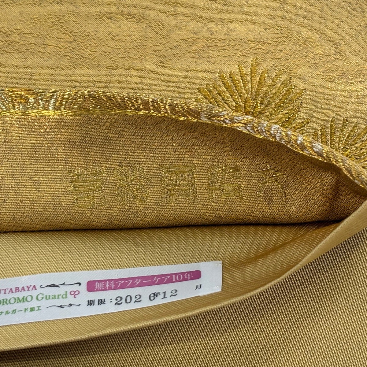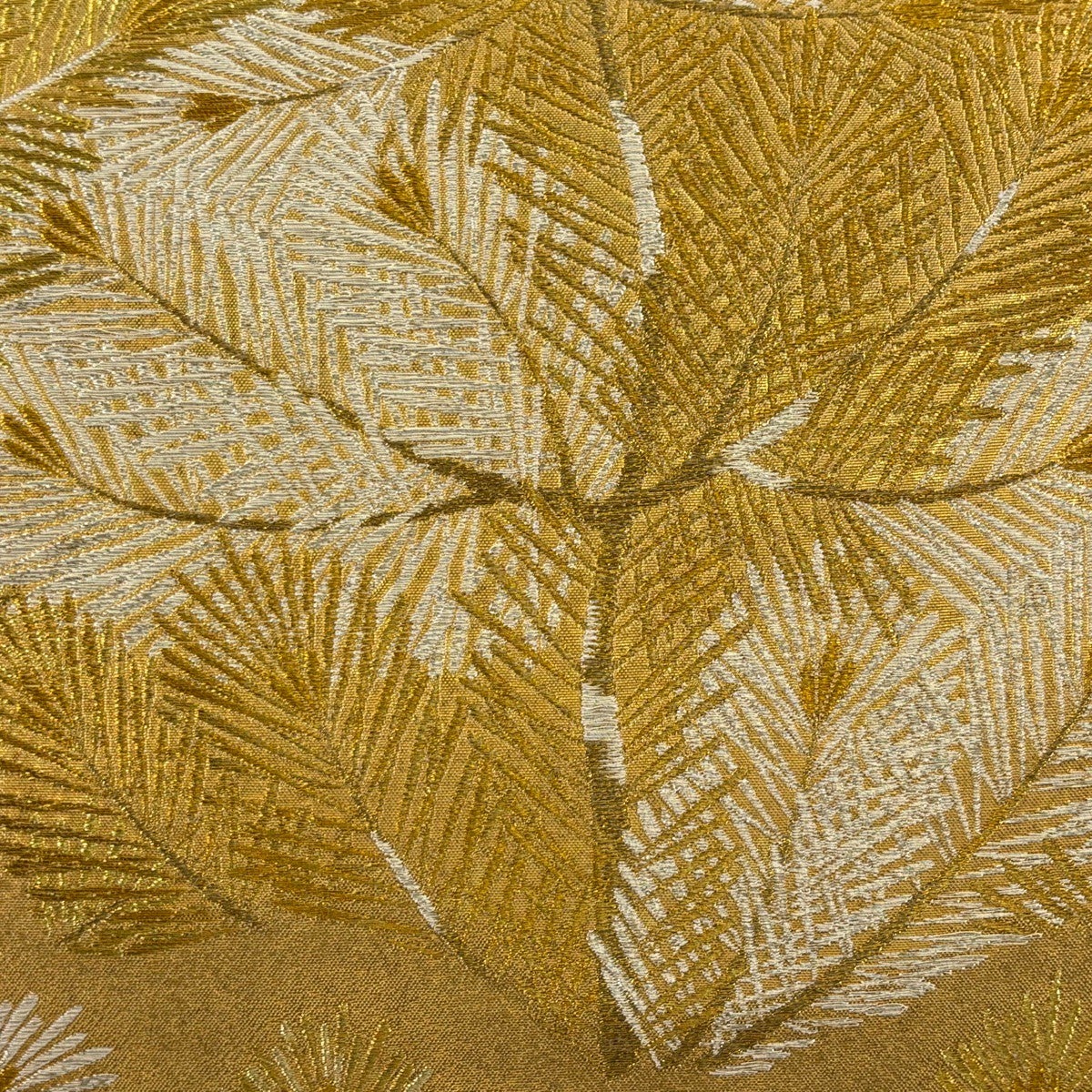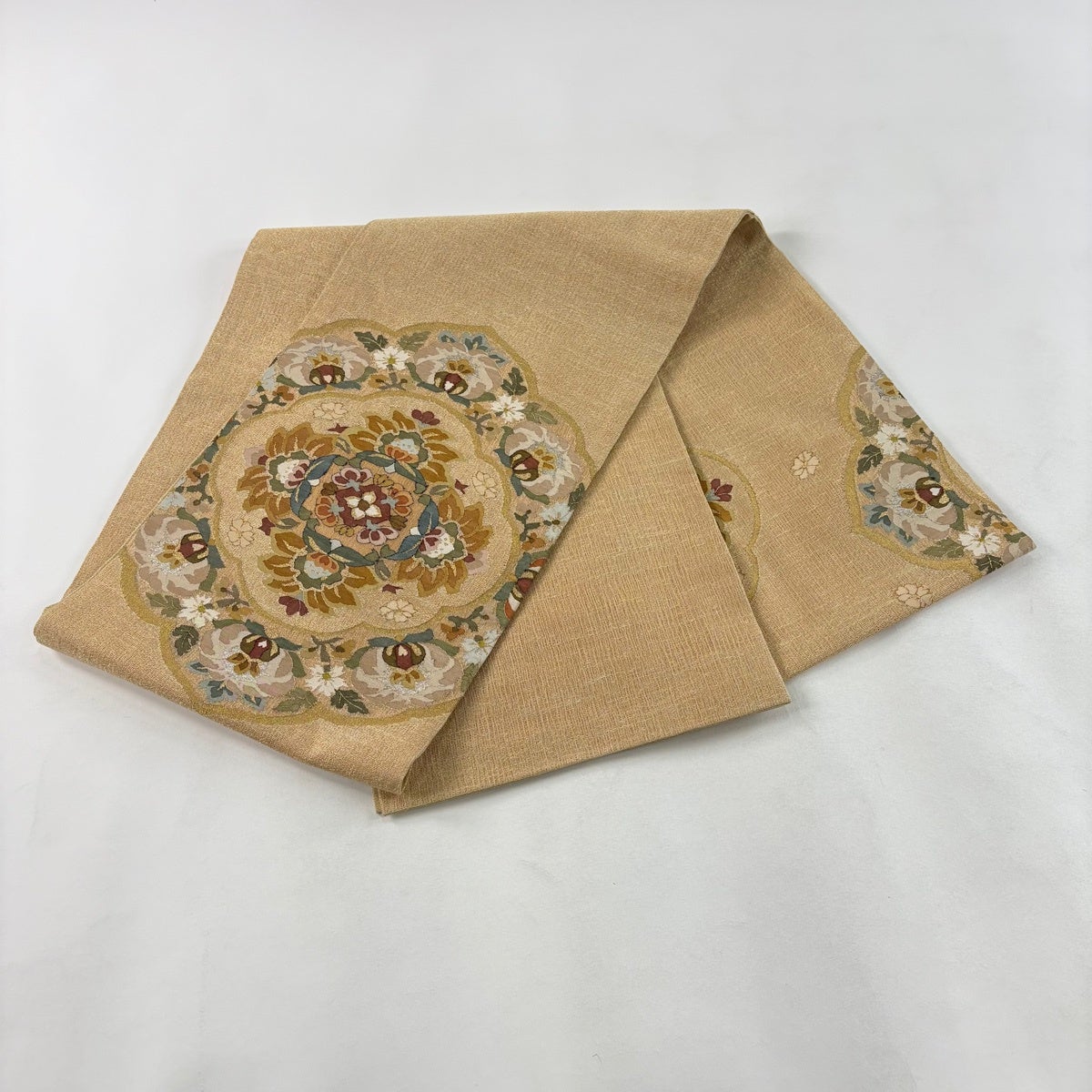 半幅帯 秀品 花唐草 箔 黄土色 正絹