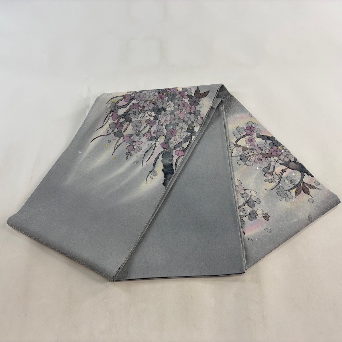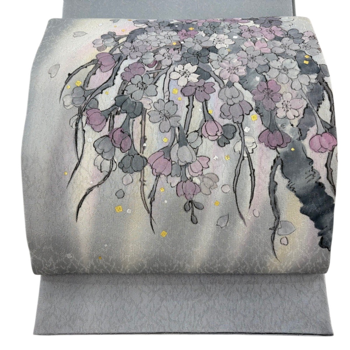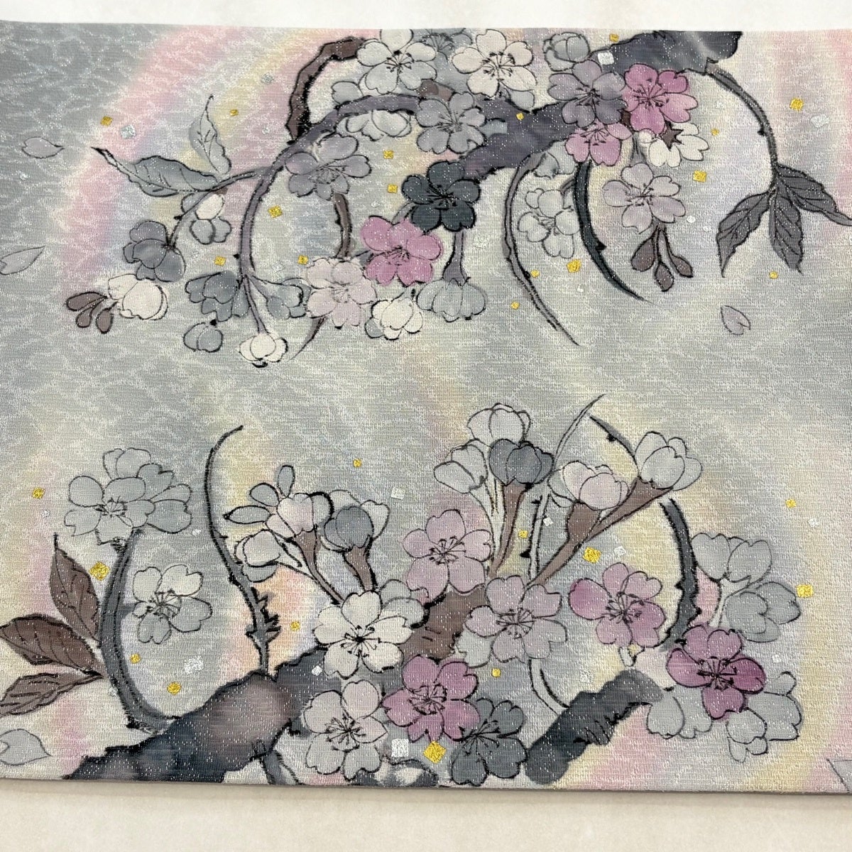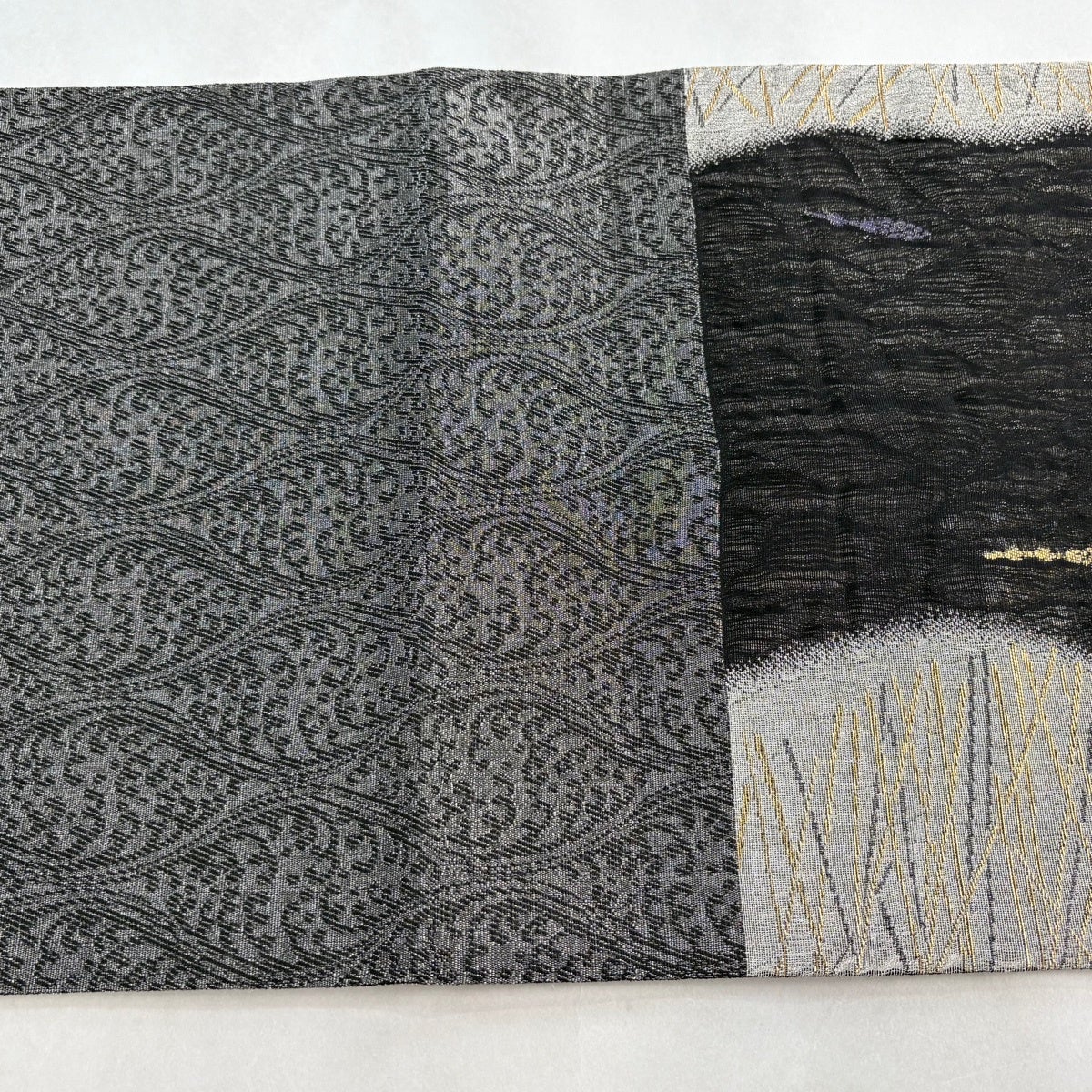 【美品】 袋帯 秀品 証紙あり ぼかし柄 灰色 全通 正絹