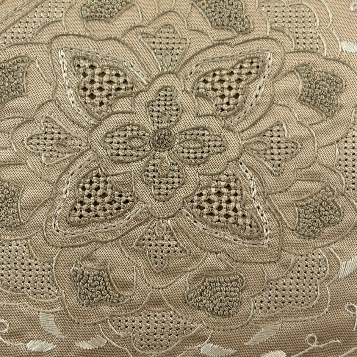 【美品】 袋帯 名品 落款あり 菊 幾何学模様 銀糸 クリーム お太鼓柄 正絹