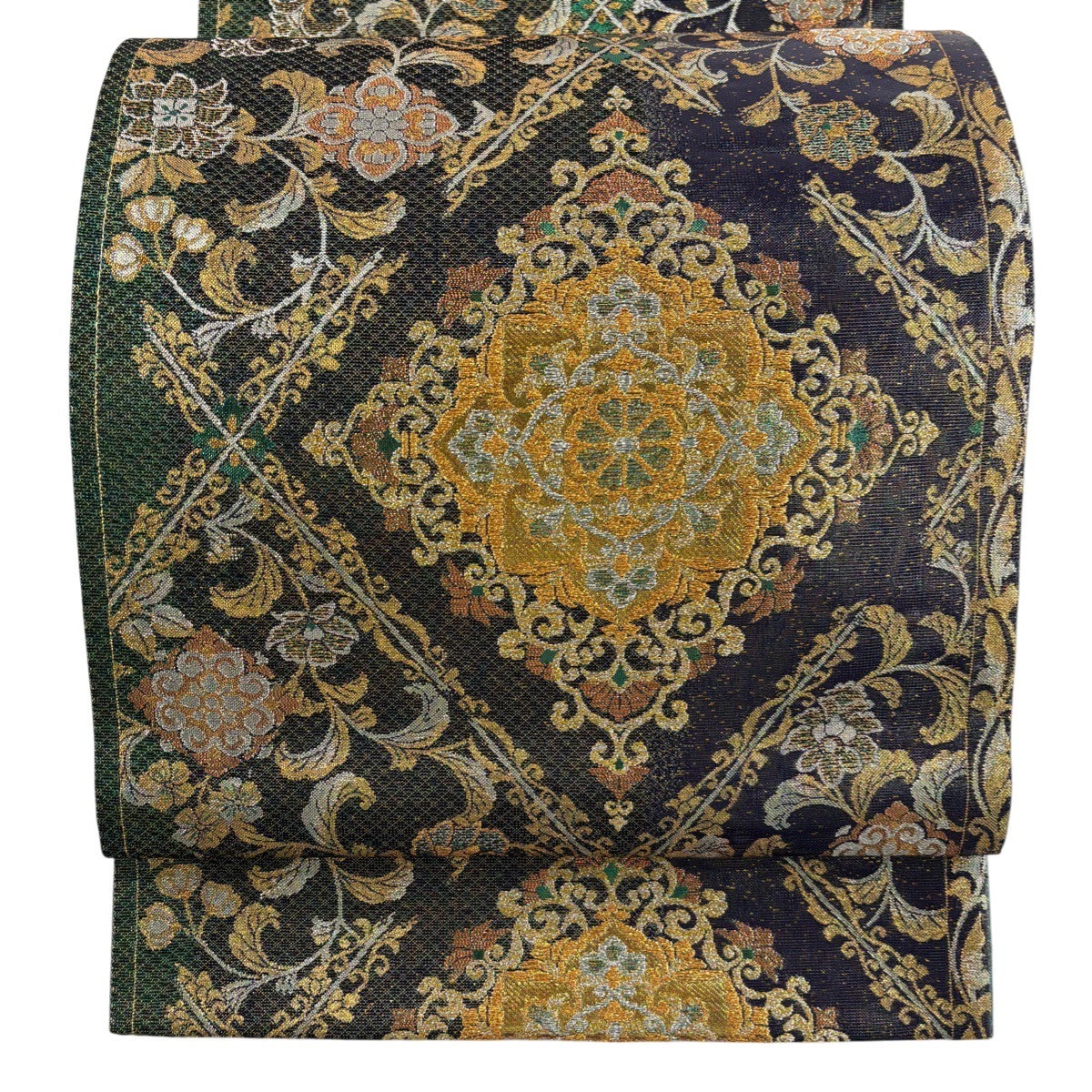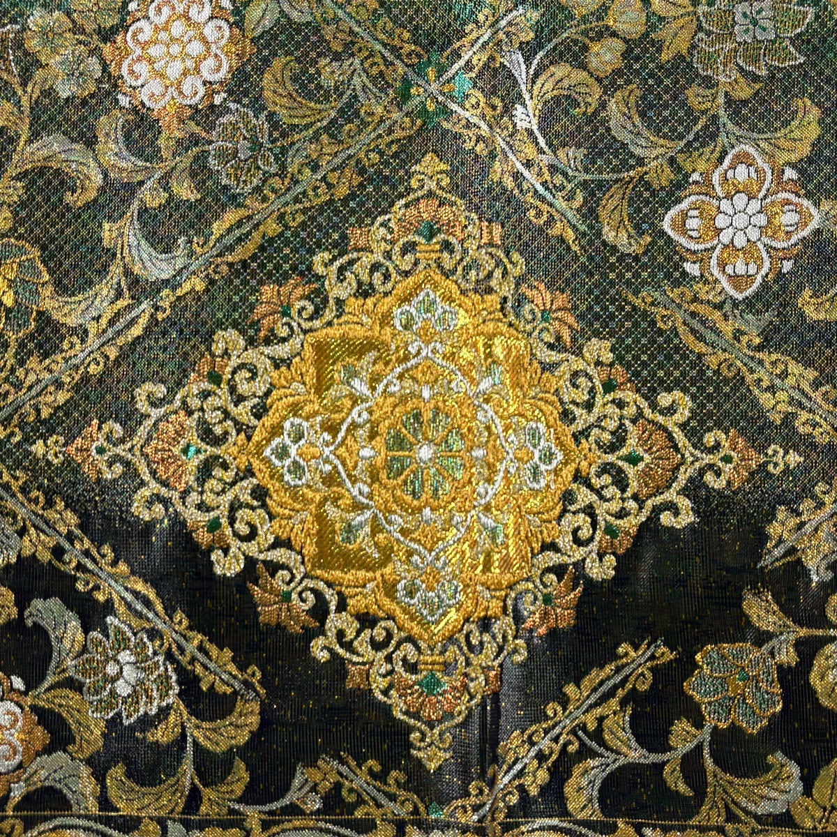 袋帯 秀品 菱天井 華文 金糸 箔 金色 六通 正絹