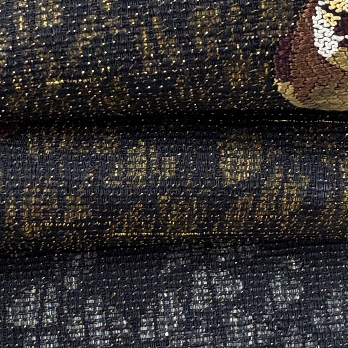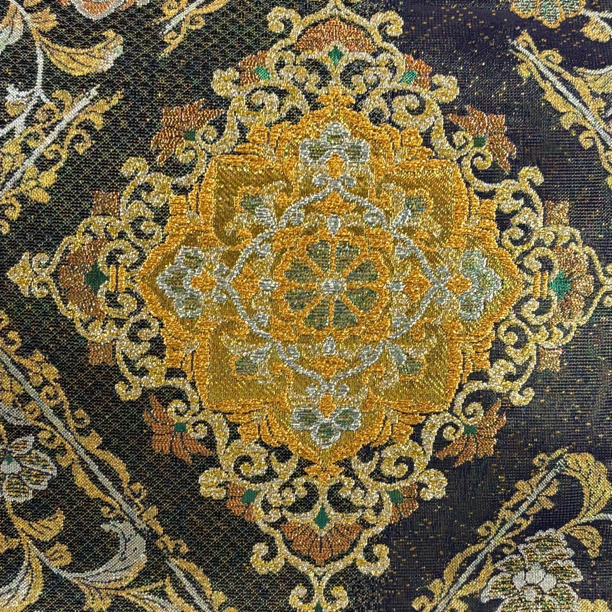 【美品】 袋帯 秀品 幾何学模様 金銀糸 墨色 お太鼓柄 正絹