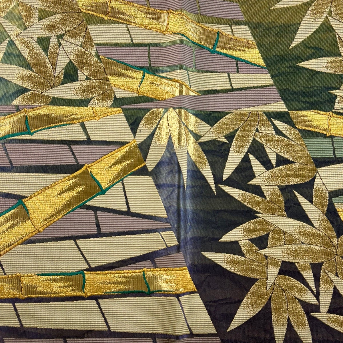 【美品】 袋帯 秀品 華文 笹蔓 金糸 箔 金色 全通 正絹