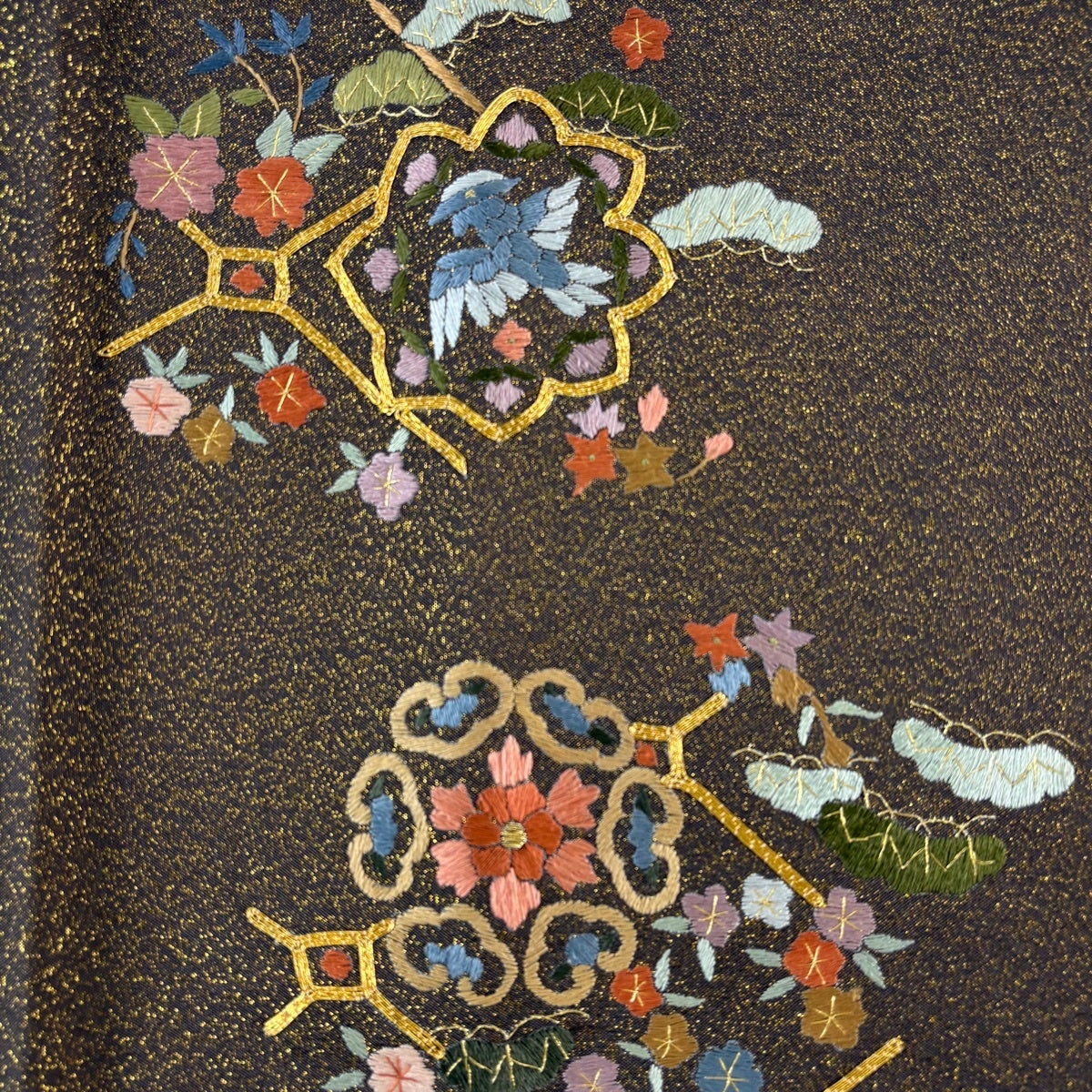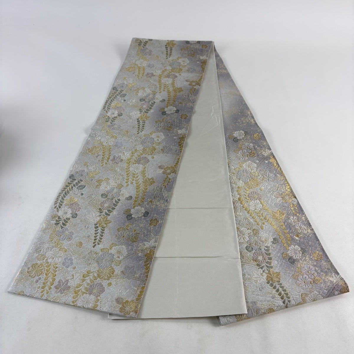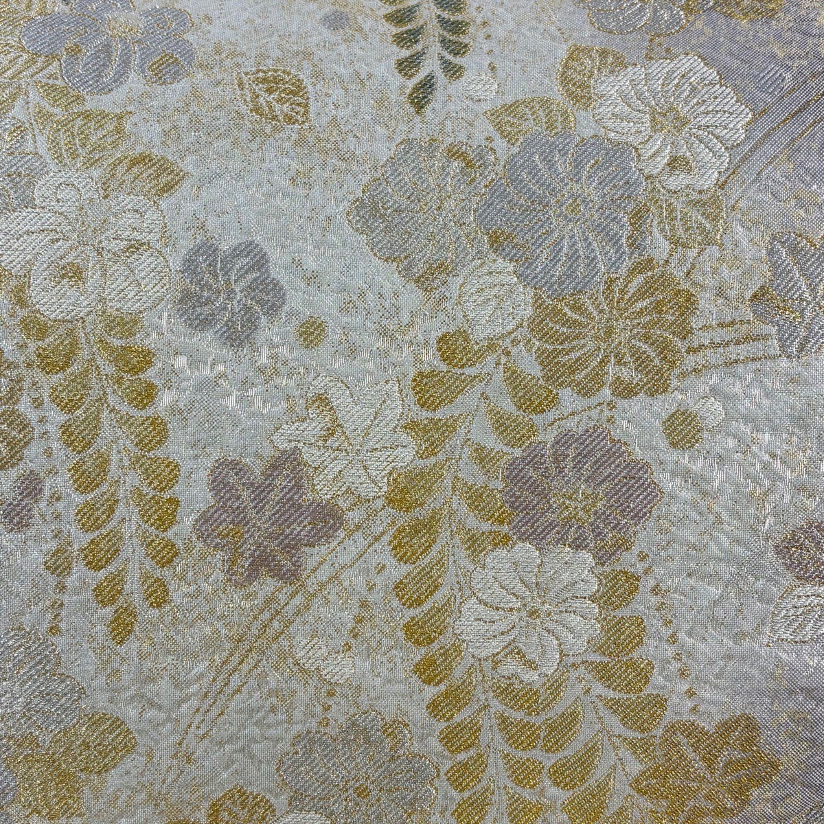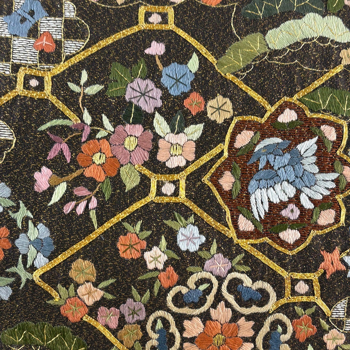 【美品】 丸帯 名品 色紙 草花 金糸 箔 金色 お太鼓柄 正絹
