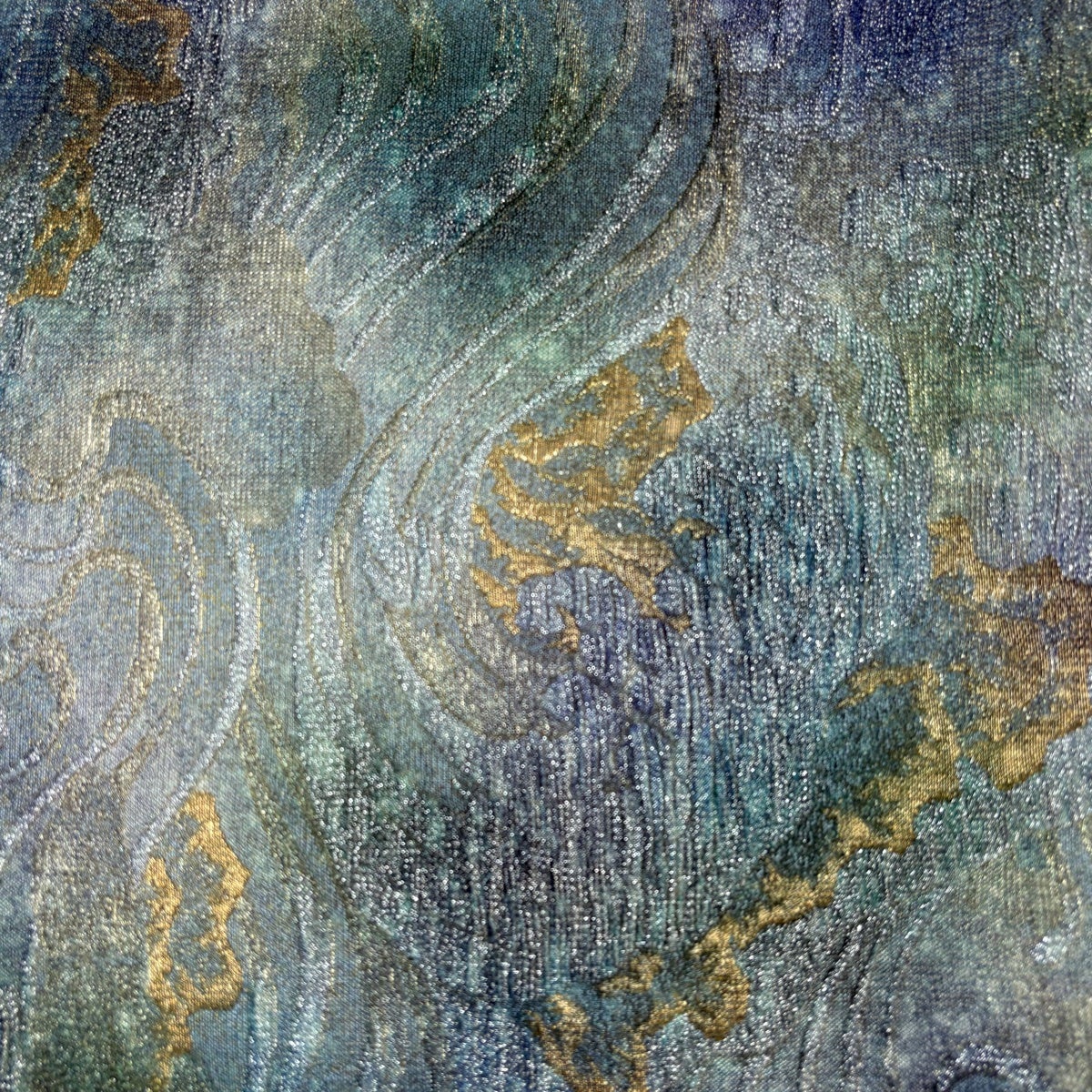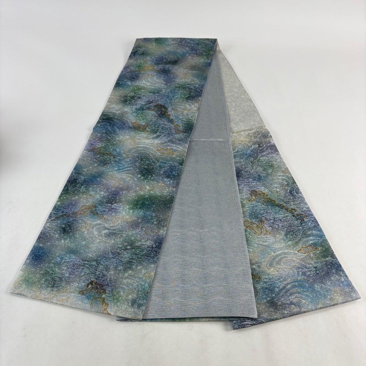 【美品】 袋帯 逸品 紬地 更紗 ぼかし 紺色 六通 正絹