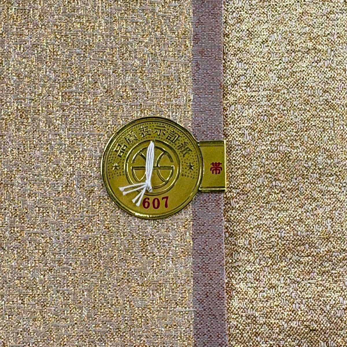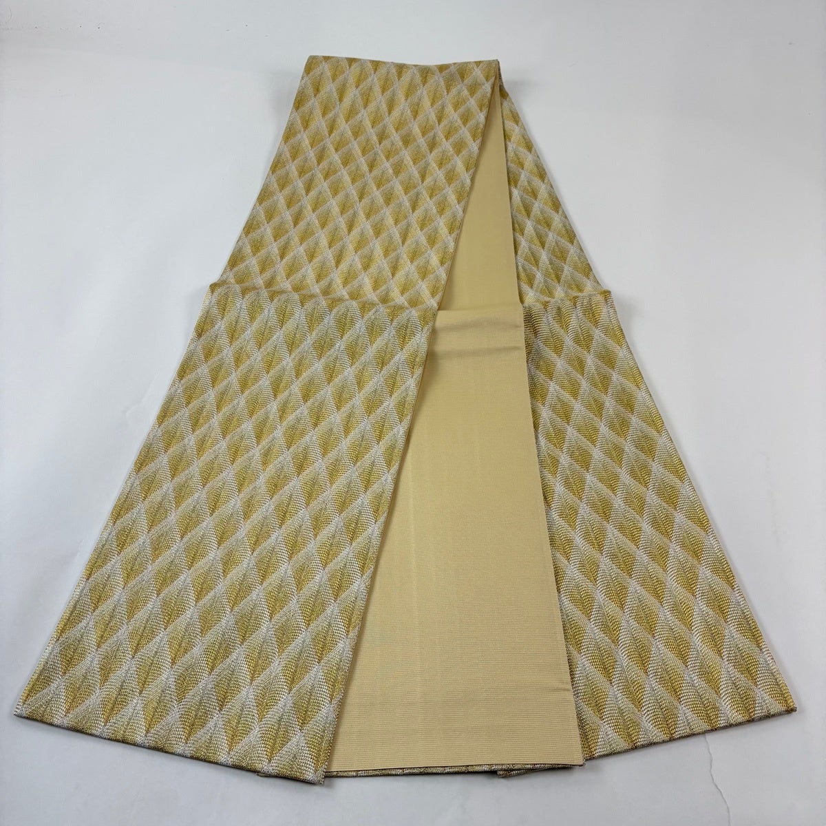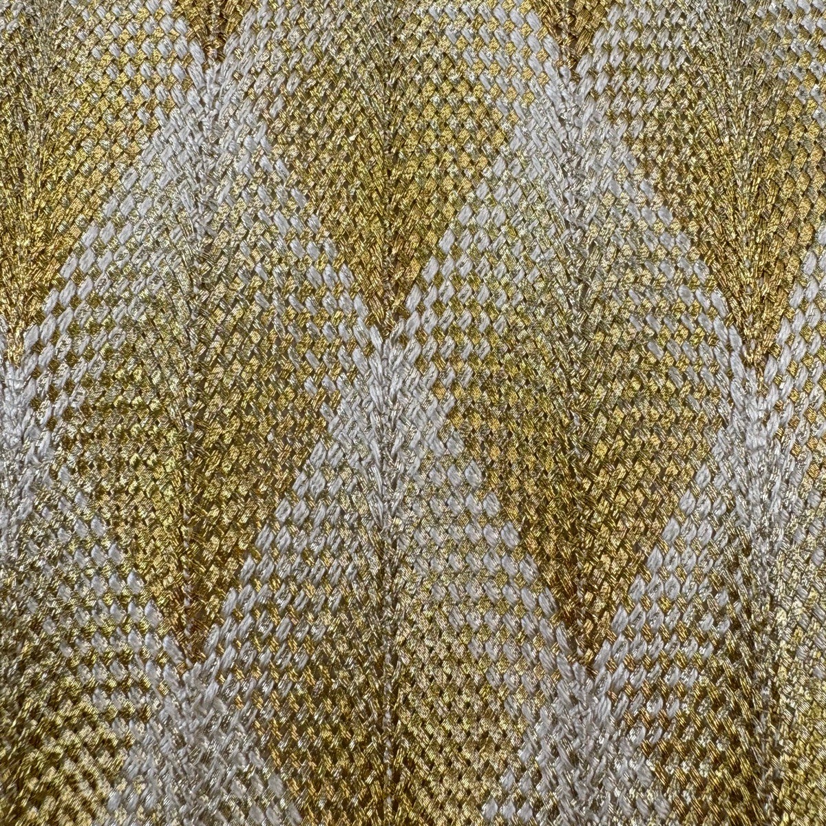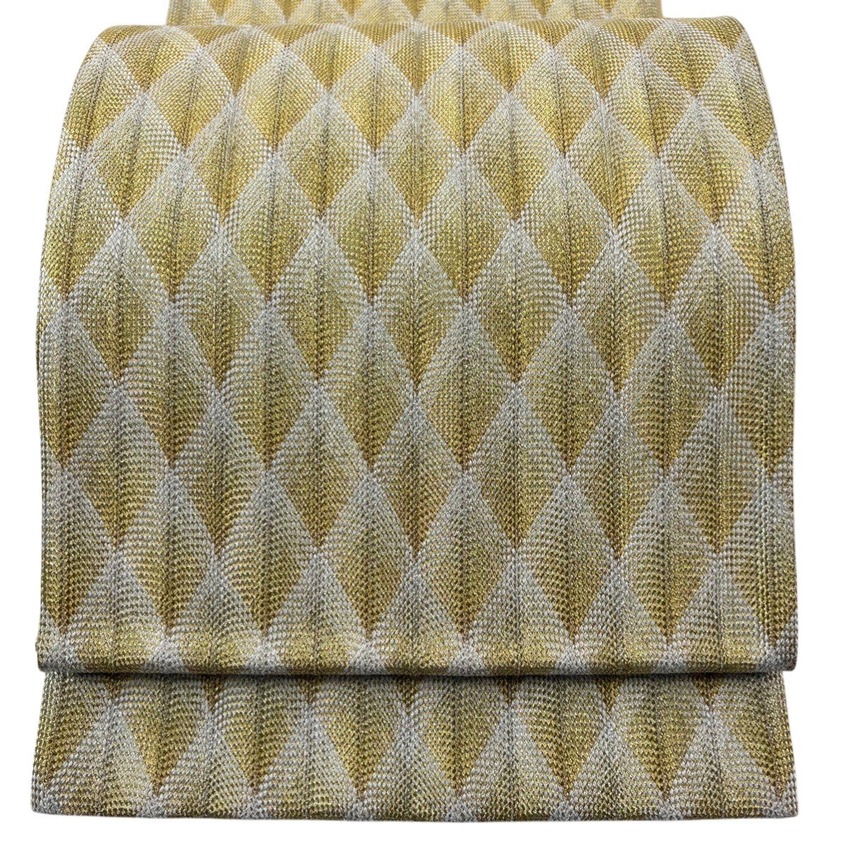 【美品】 袋帯 秀品 斜格子 縞模様 金糸 組織 金色 全通 正絹