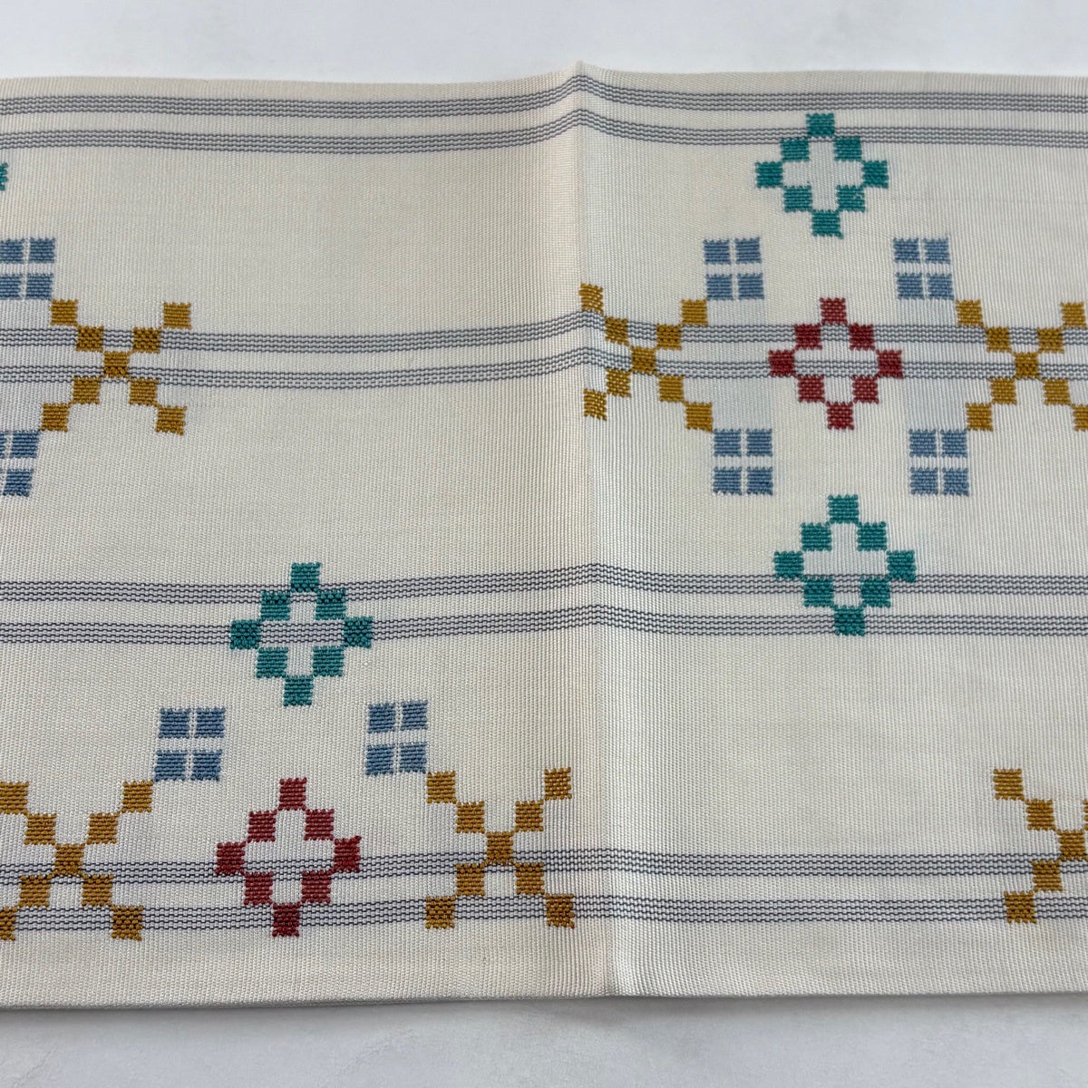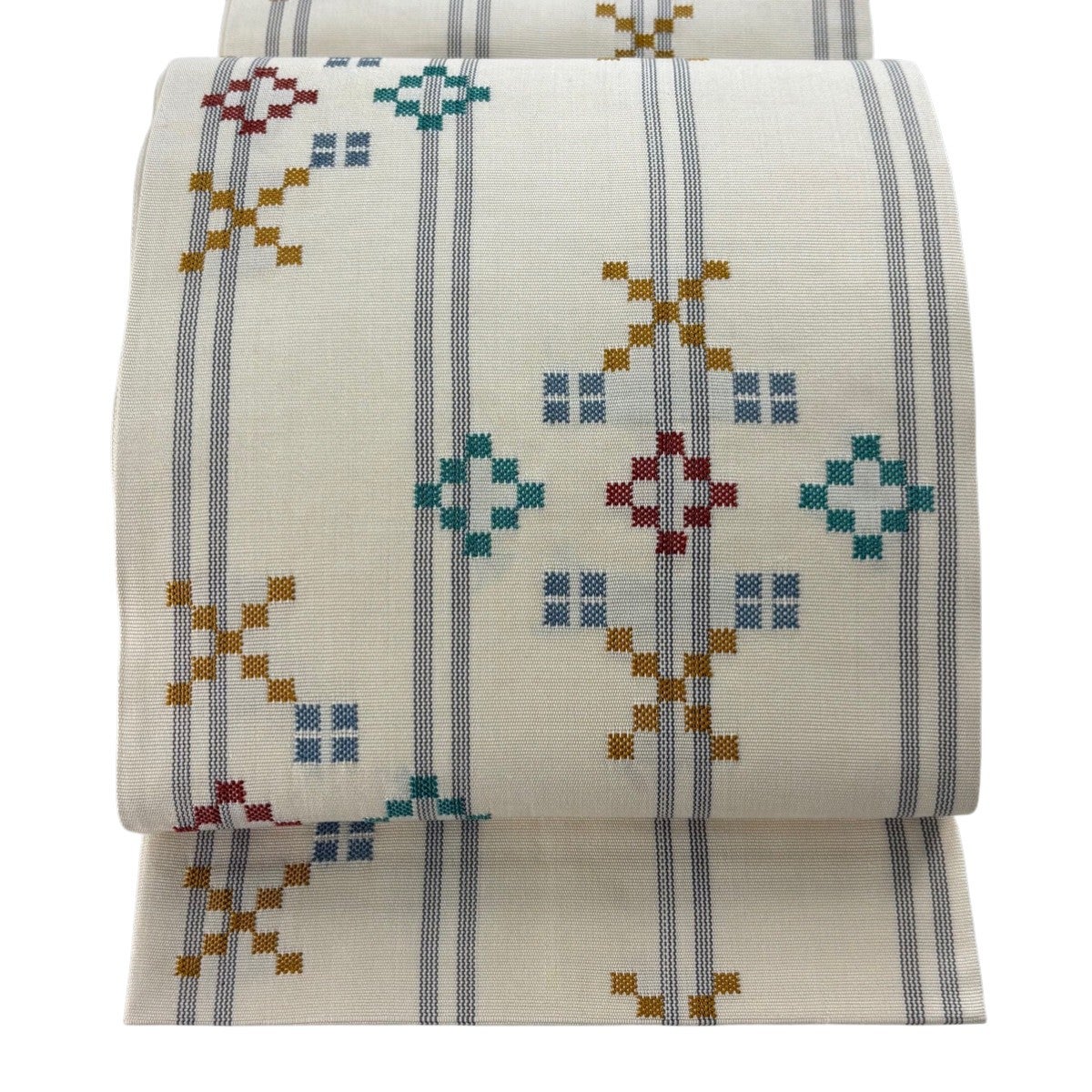 【美品】 袋帯 秀品 縞 幾何学 クリーム 六通 正絹