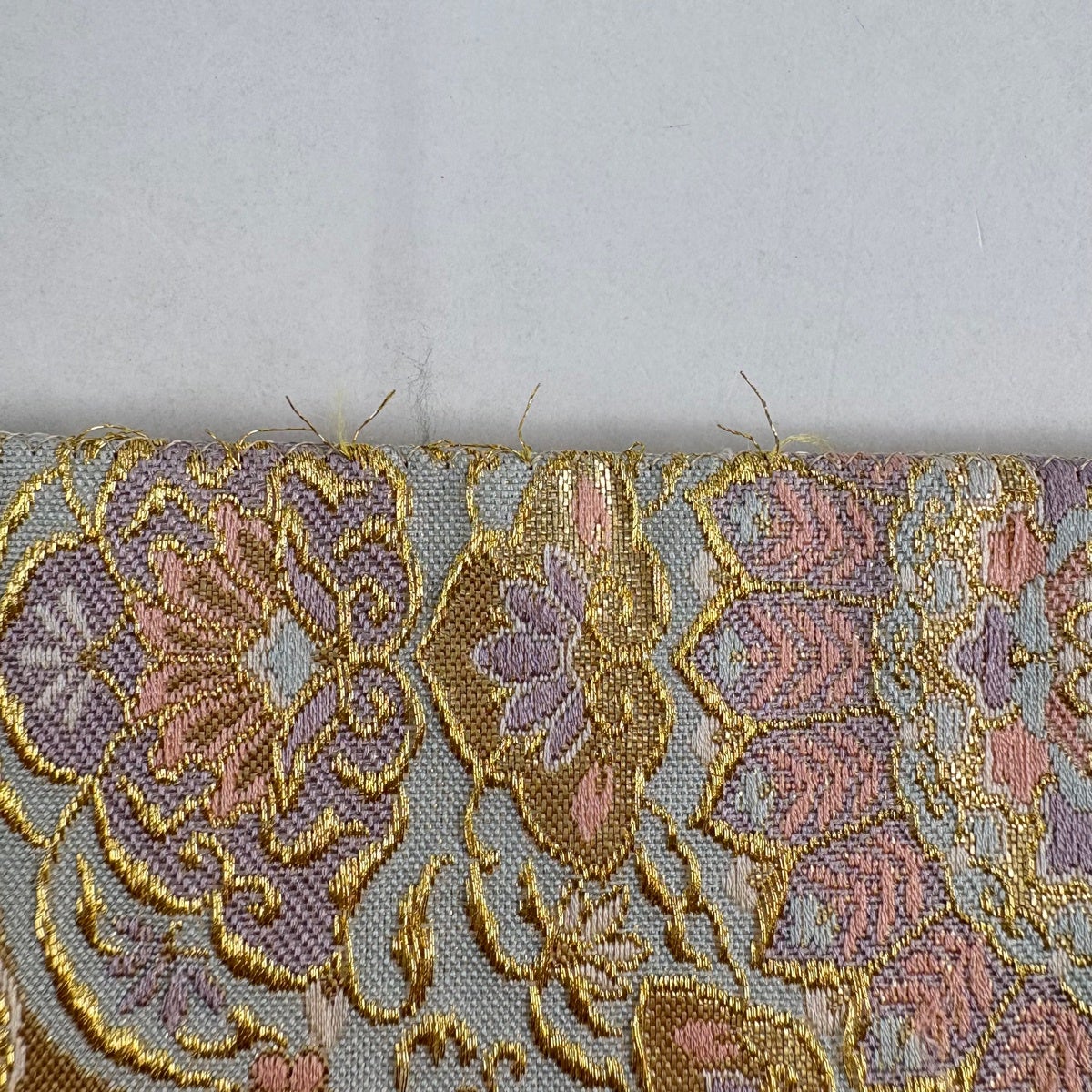 袋帯 秀品 純金箔 花籠 唐織 箔 灰緑 六通 正絹