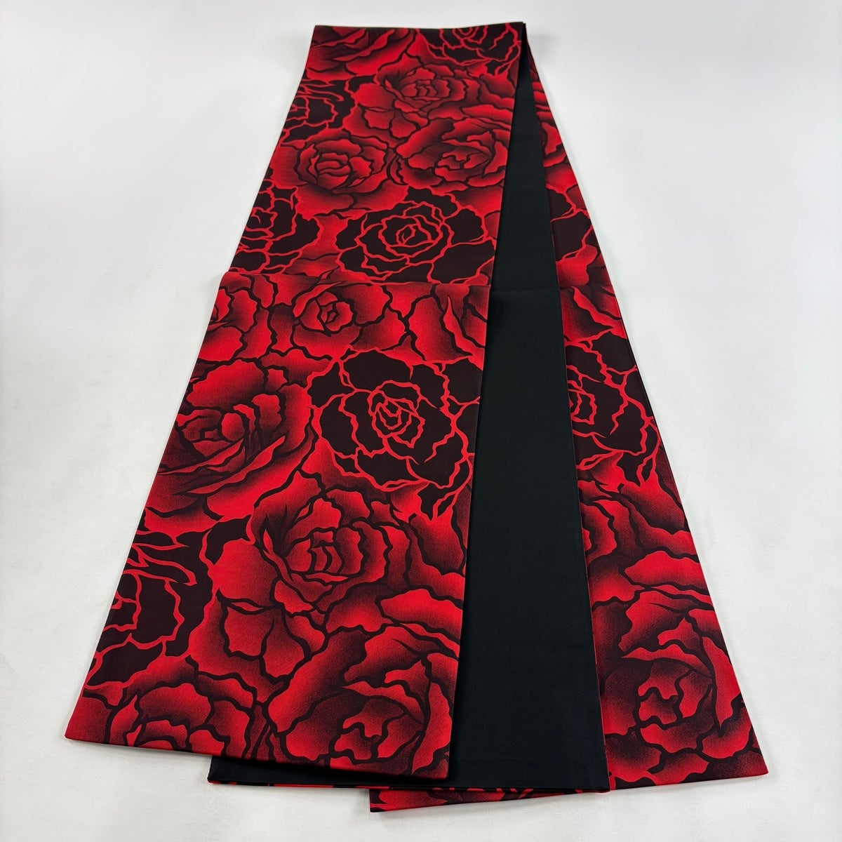 【美品】 袋帯 秀品 薔薇 黒 全通 正絹