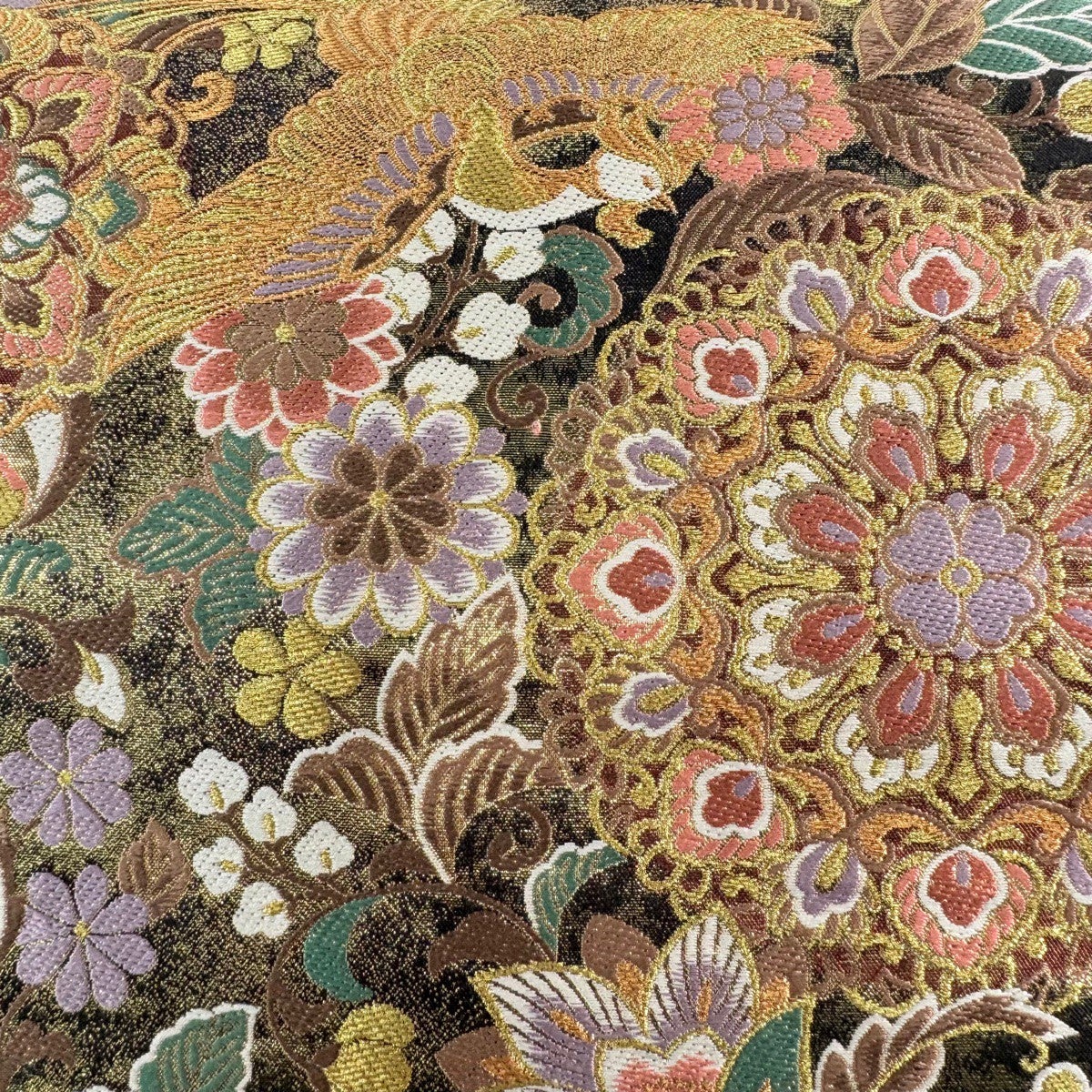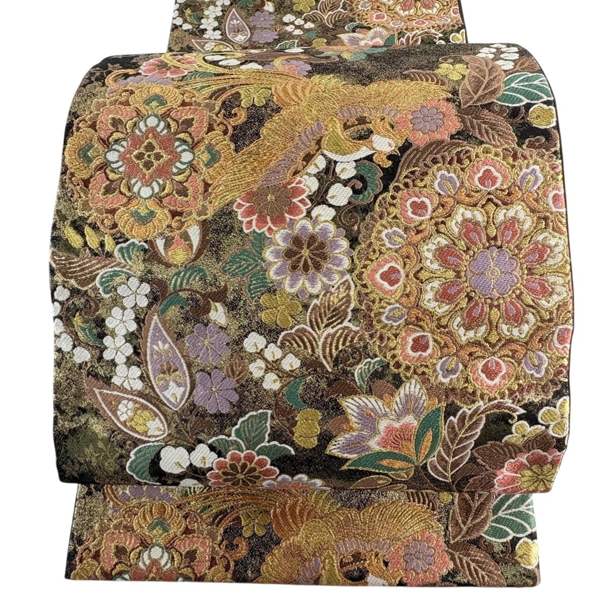 【美品】 丸帯 秀品 吉祥彩華綴 鳳凰 草花 金銀糸 箔 灰色 六通 正絹
