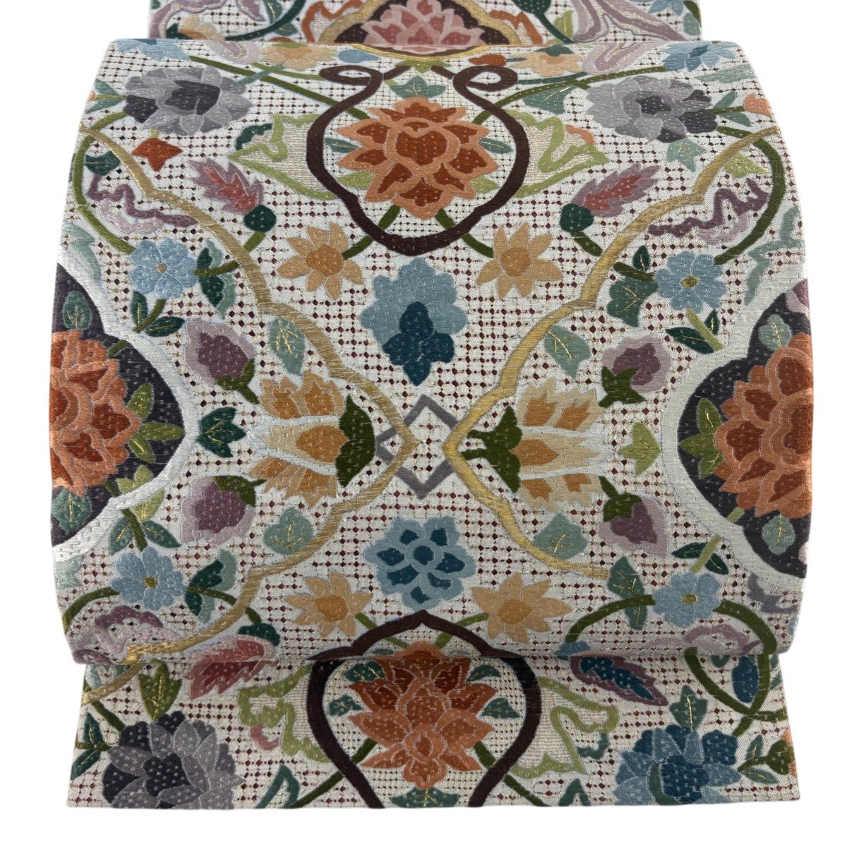 袋帯 名品 川島織物 落款あり 動物 花唐草 箔 刺繍 クリーム 六通 正絹