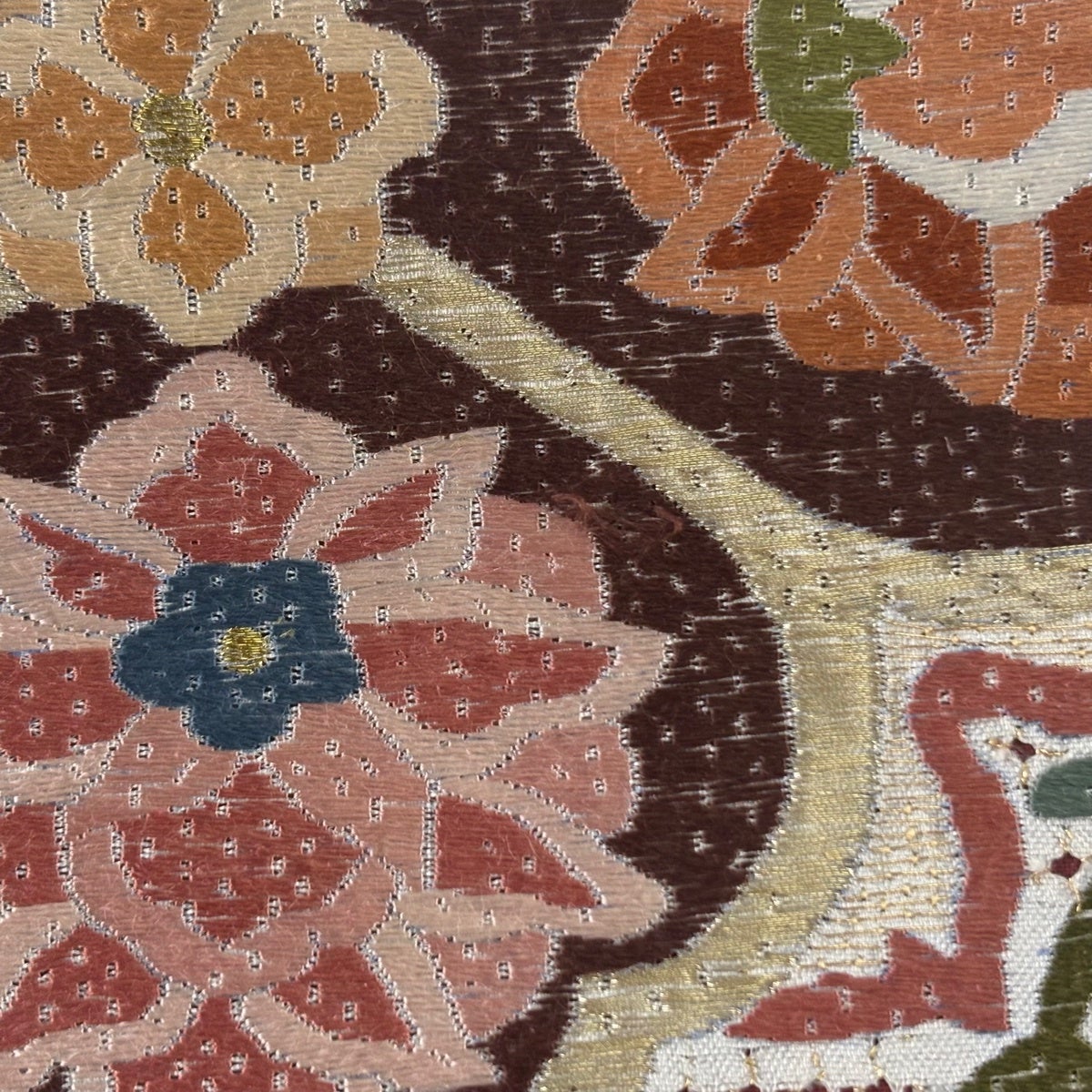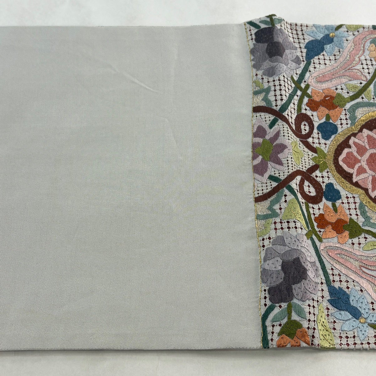 袋帯 名品 蜀江文 草花 刺繍 金糸 黒灰 お太鼓柄 正絹