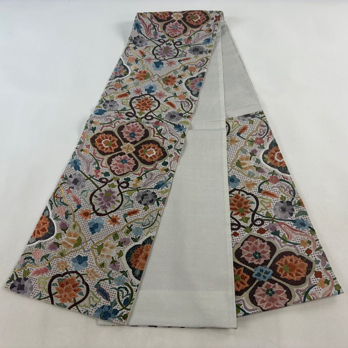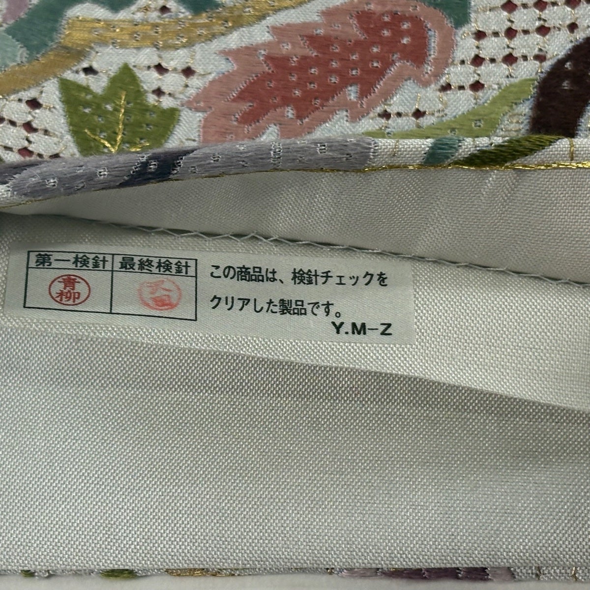 【美品】 袋帯 名品 加納幸 落款あり 証紙あり 華文 菱 金銀糸 刺繍 灰白 六通 正絹