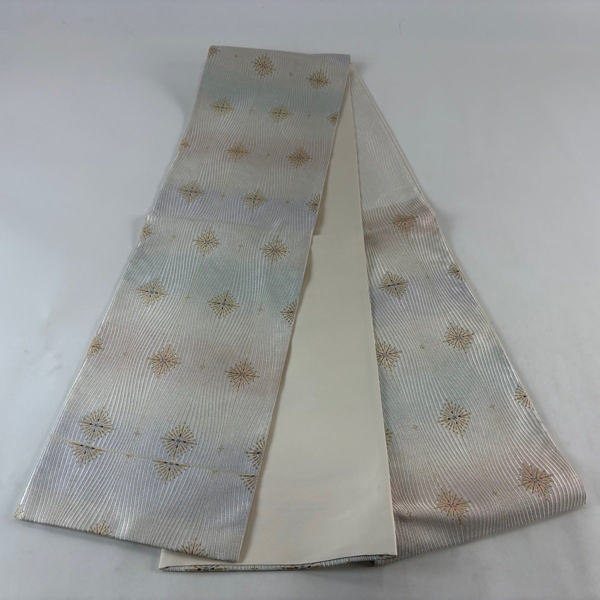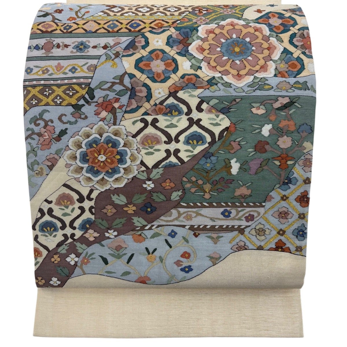 40%OFF 袋帯 逸品 草花 絽刺し 金糸 ベージュ 全通 正絹 K30