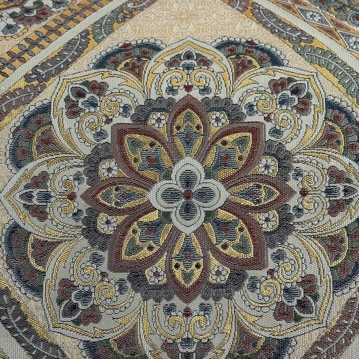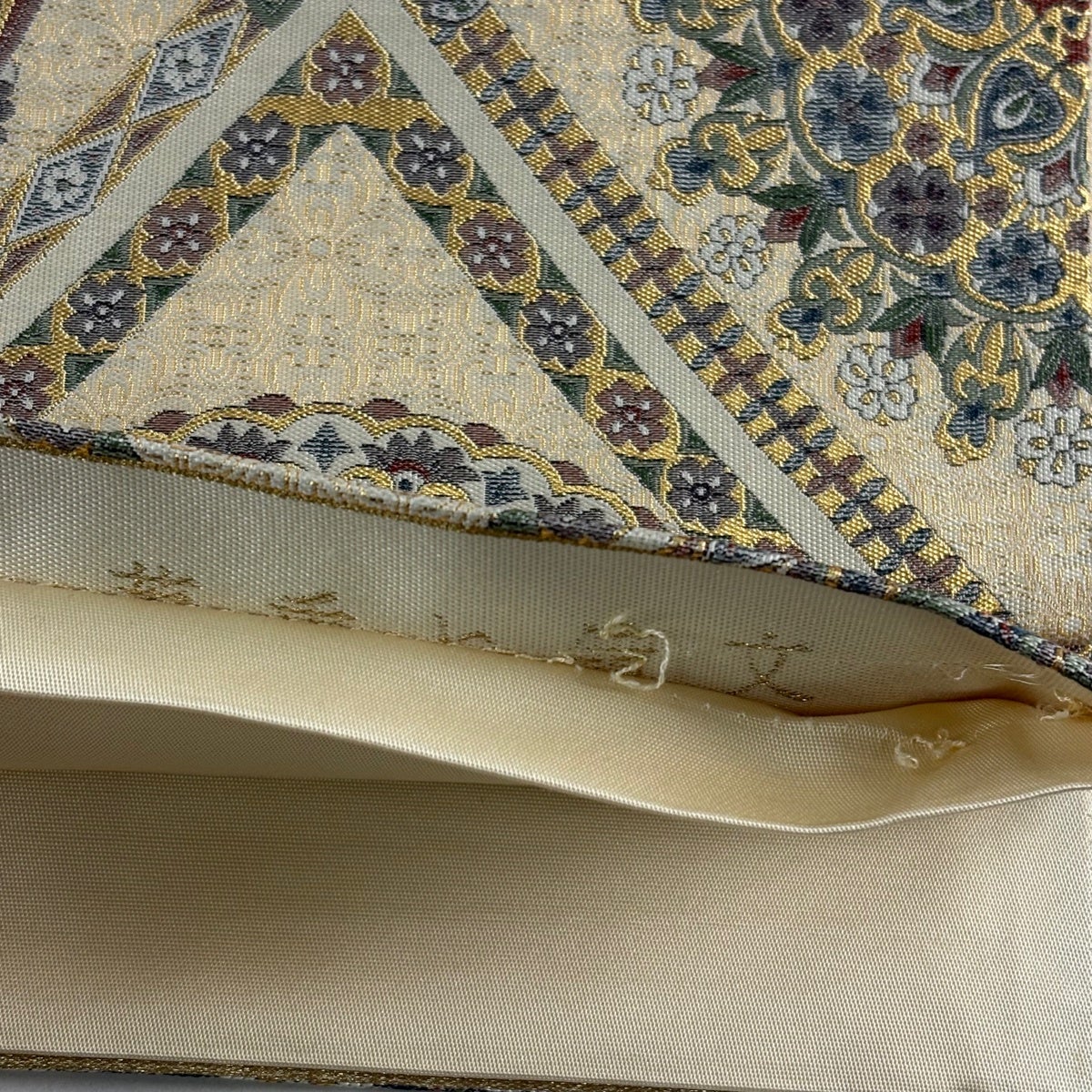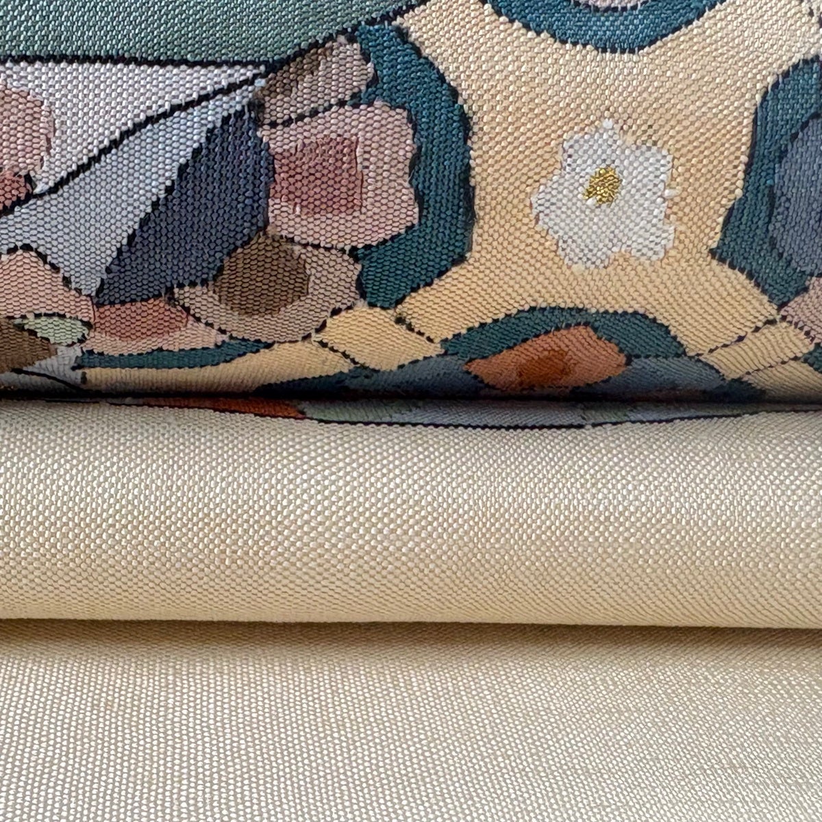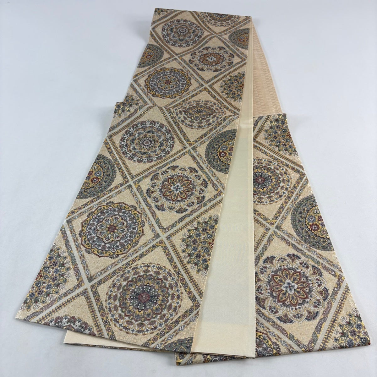 【美品】 袋帯 逸品 華文 草花 金糸 綴れ ベージュ お太鼓柄 正絹