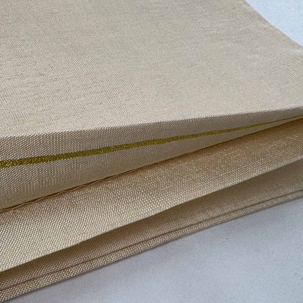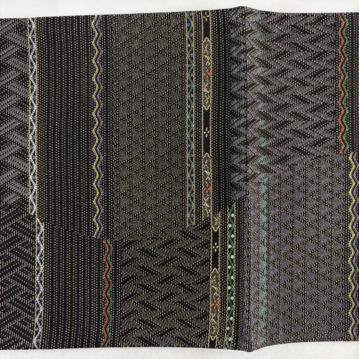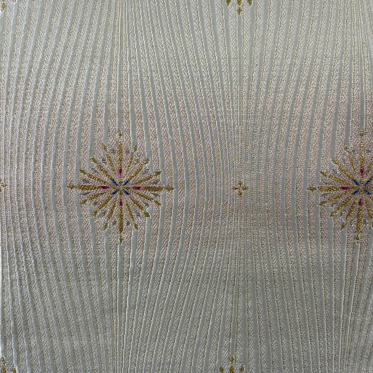 名古屋帯 逸品 段縞 燕 刺し子刺繍 クリーム 正絹