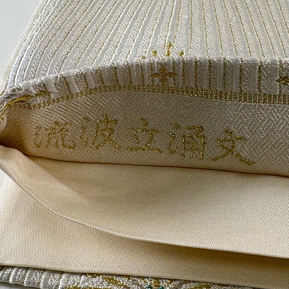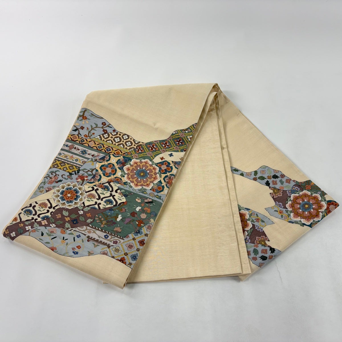 【美品】 袋帯 逸品 菊 唐織 金糸 クリーム 六通 正絹