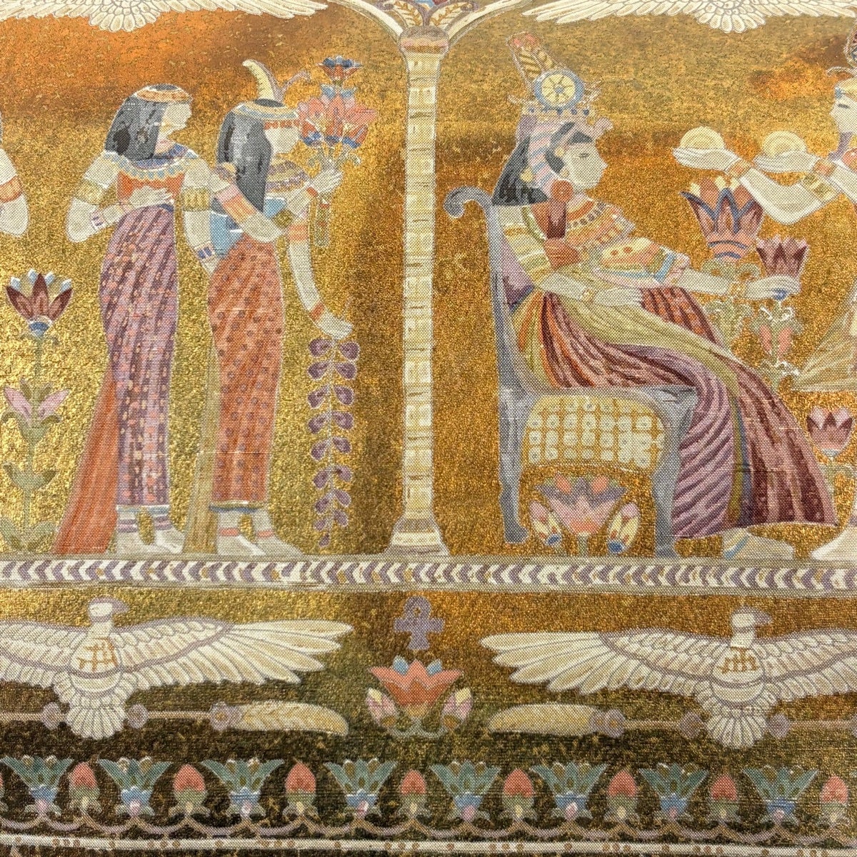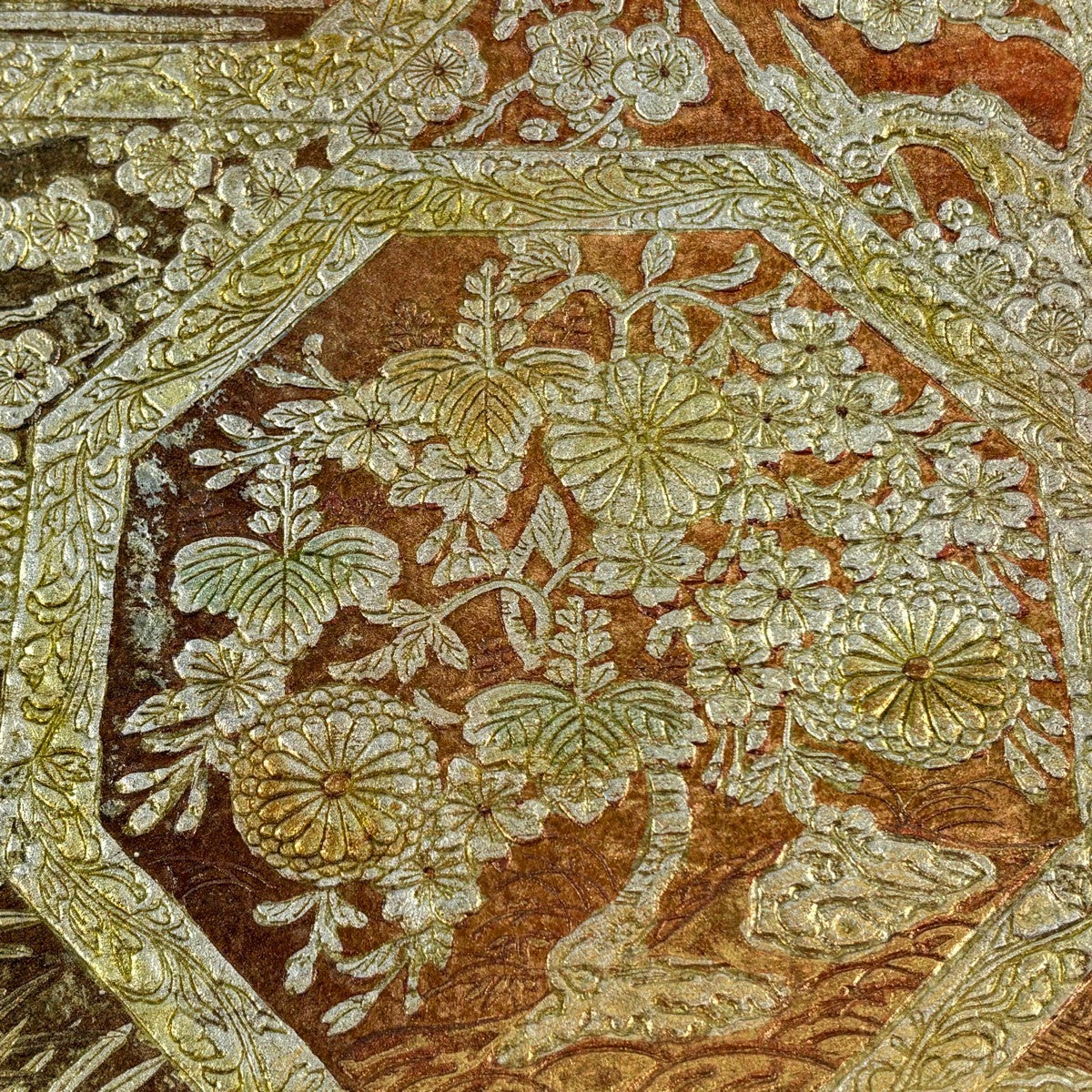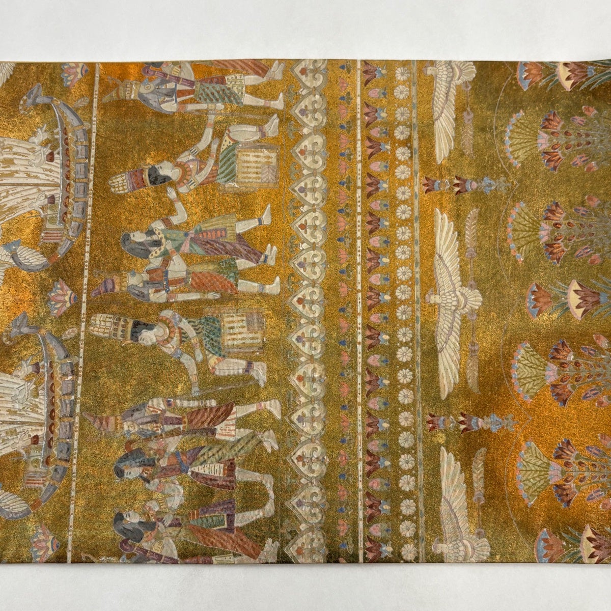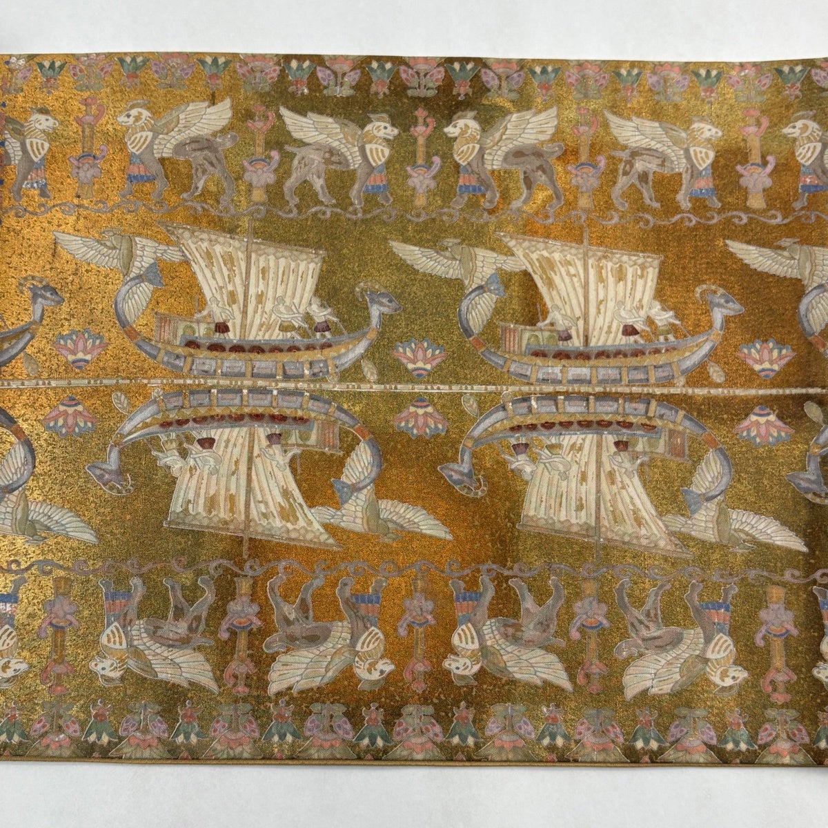 【美品】 袋帯 逸品 落款あり 牛首紬 コプト柄 花鳥 金彩 金色 全通 正絹
