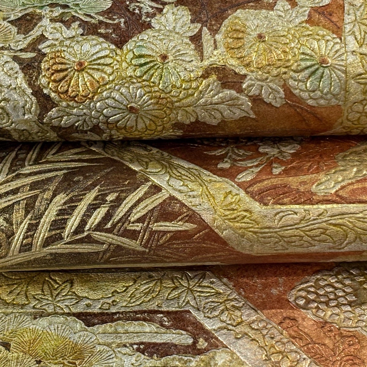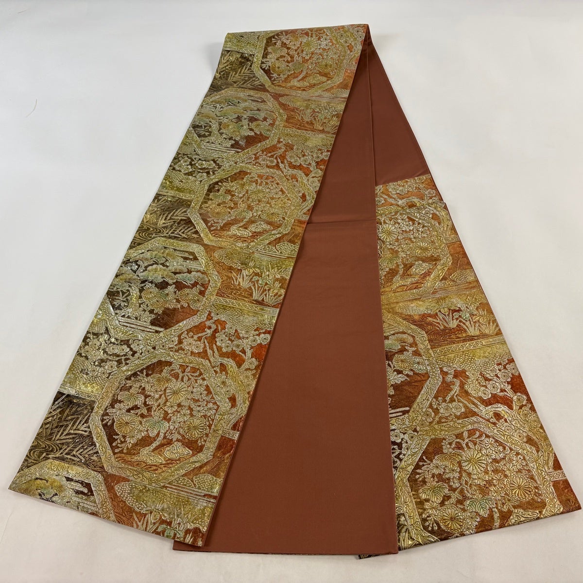 【美品】 袋帯 逸品 草花 松竹梅 金銀彩 金茶 六通 正絹