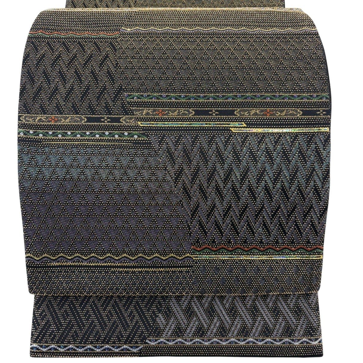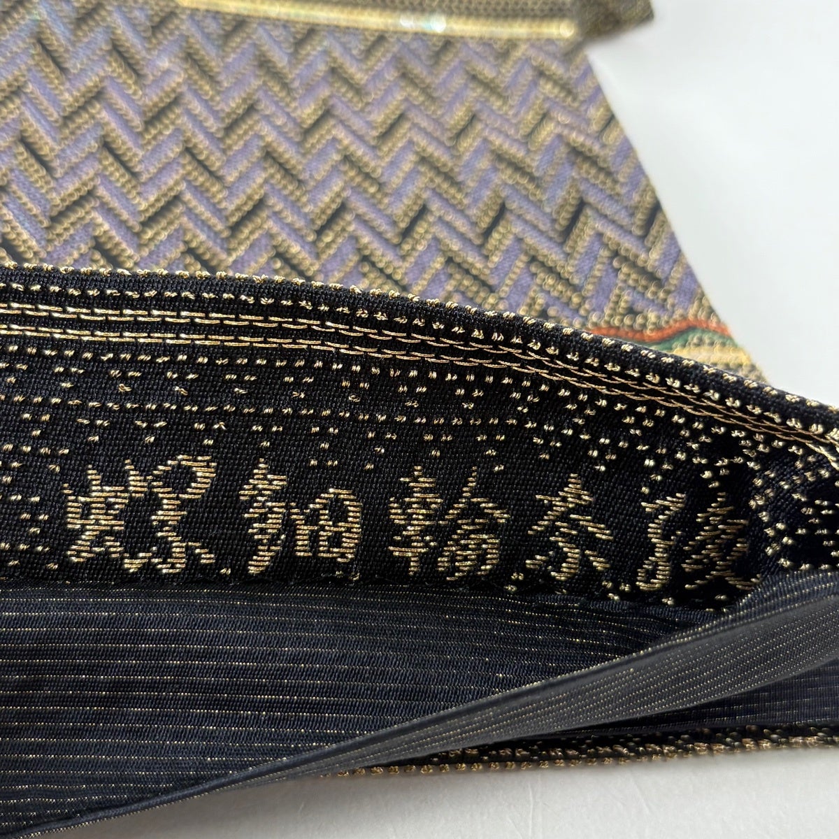 【美品】 袋帯 秀品 落款あり 竹紫苑 幾何学 箔 ぼかし 青灰色 お太鼓柄 正絹