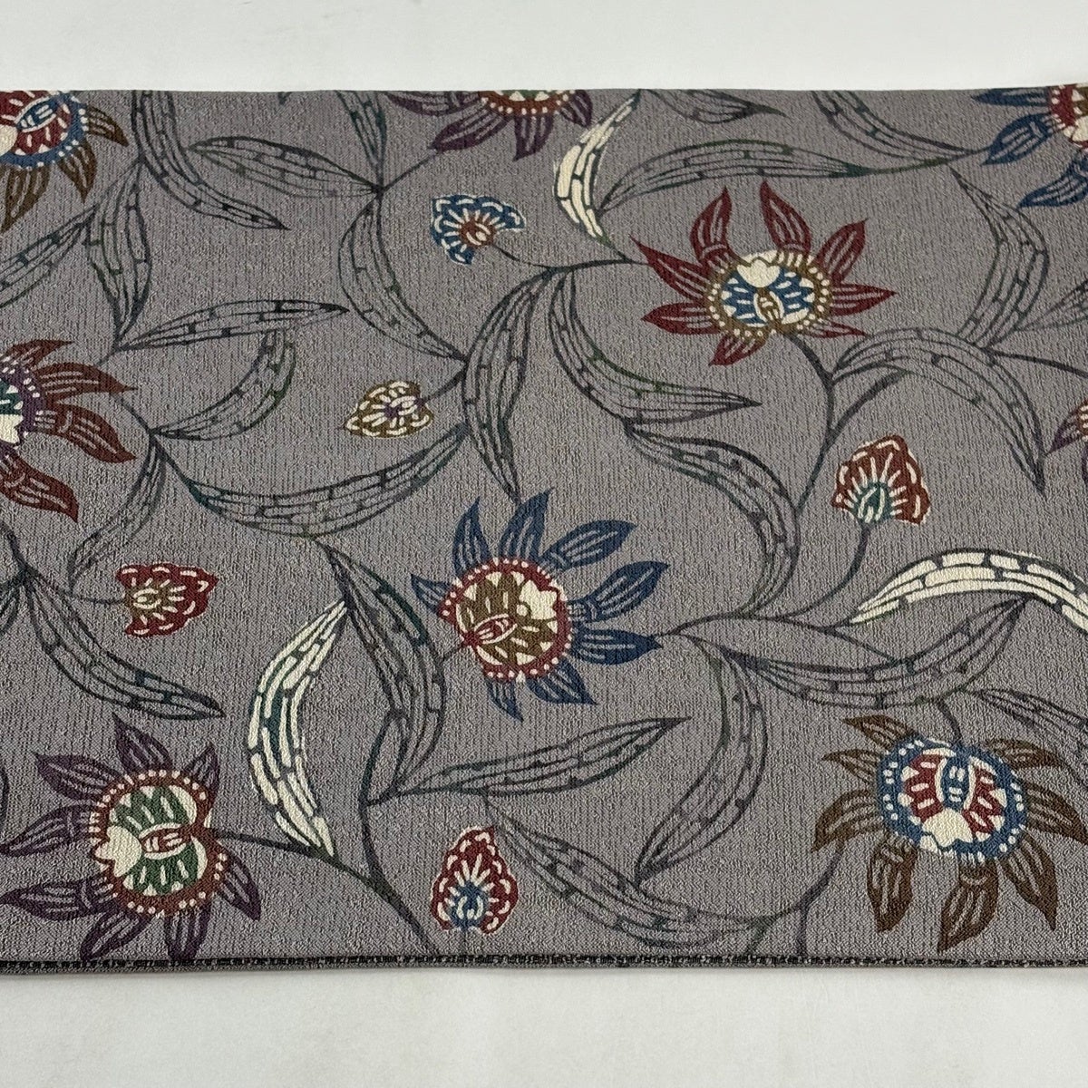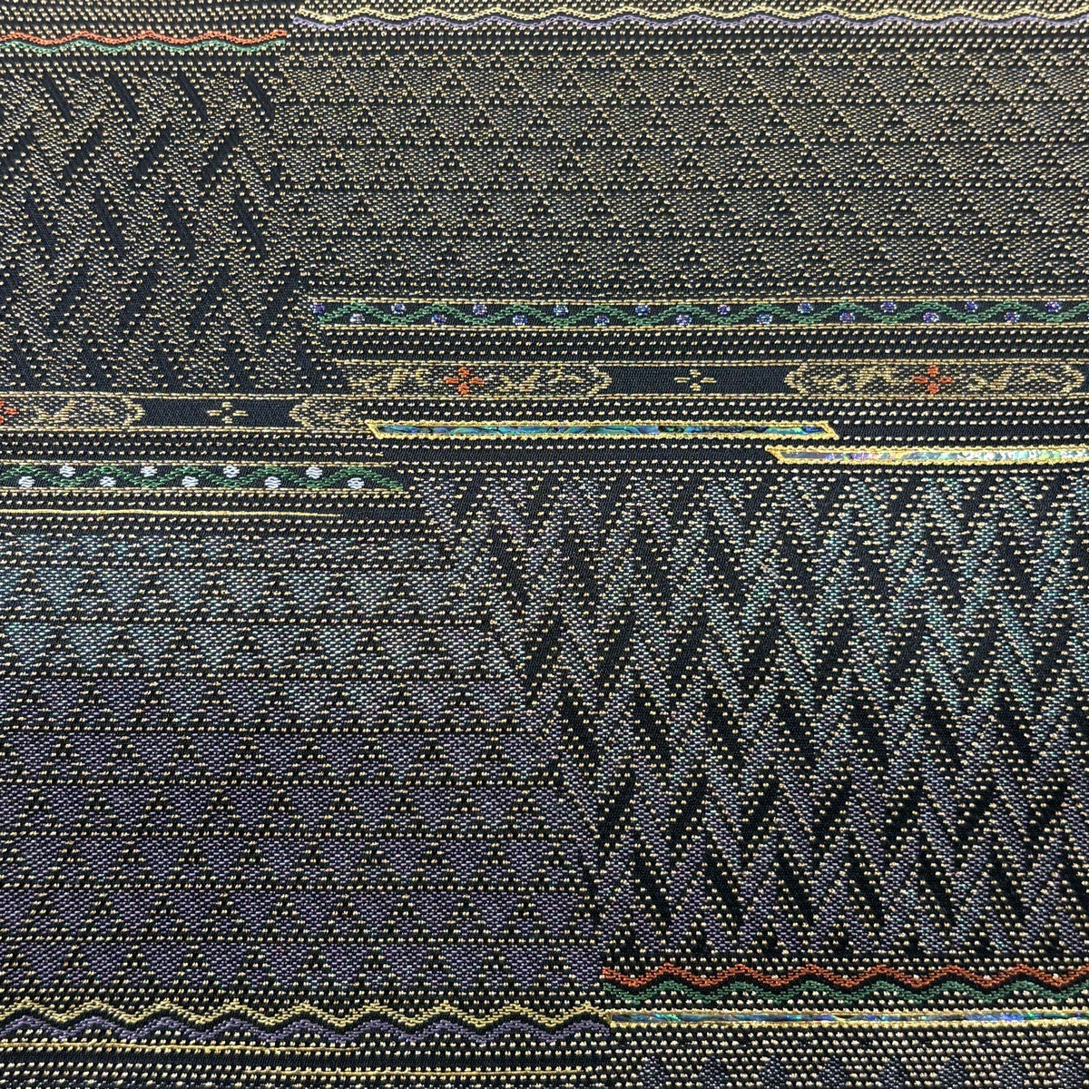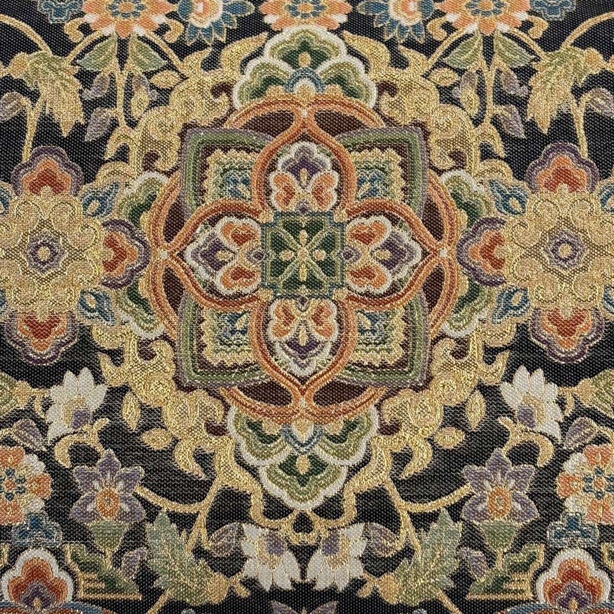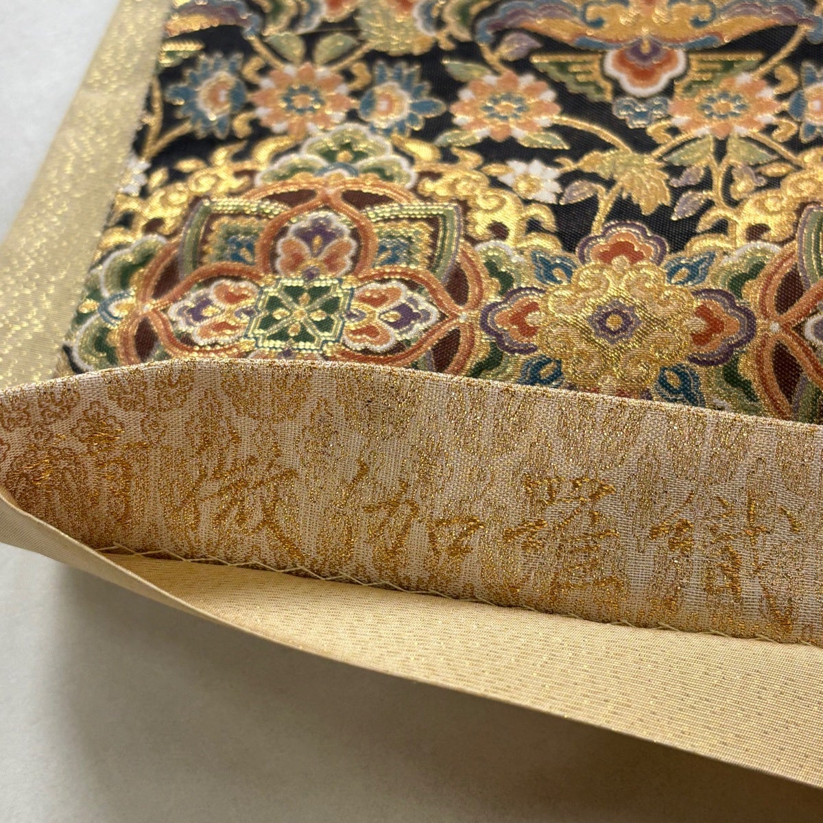 【美品】 袋帯 逸品 となみ織物 落款あり 草花 刺繍 黒 全通 正絹