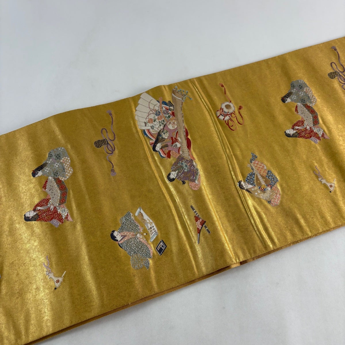 【美品】 袋帯 逸品 龍村晋 落款あり 人物 動物 箔 赤茶 全通 正絹