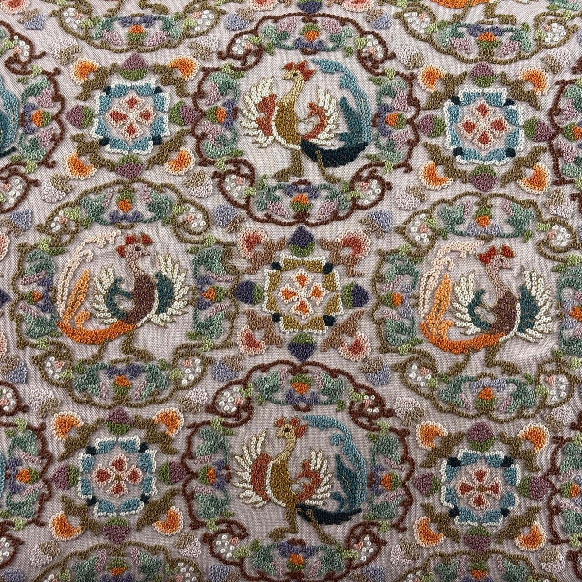 袋帯 逸品 華文 花鳥 刺繍 金糸 銀色 六通 正絹