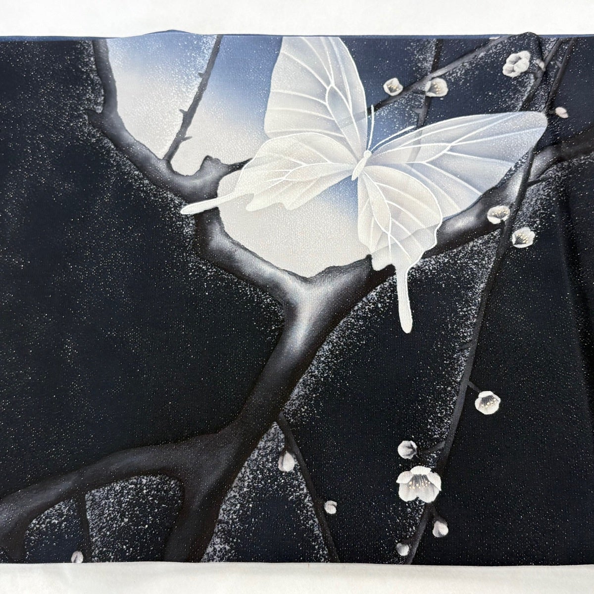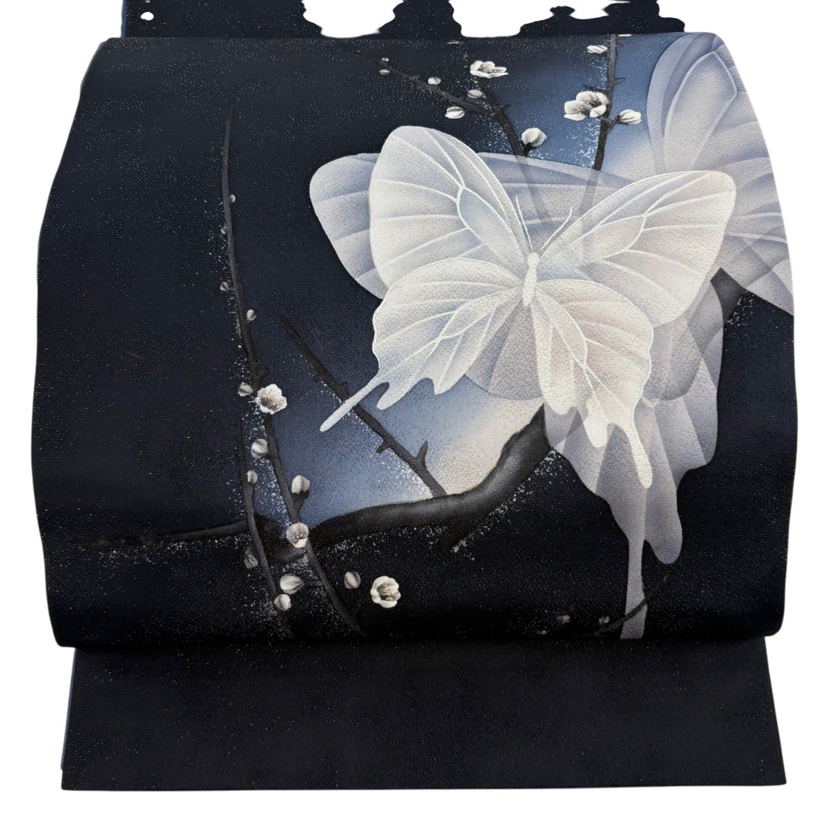 50%OFF 【美品】 袋帯 秀品 夏帯 葉 昆虫 銀糸 黒 お太鼓柄 正絹 K50