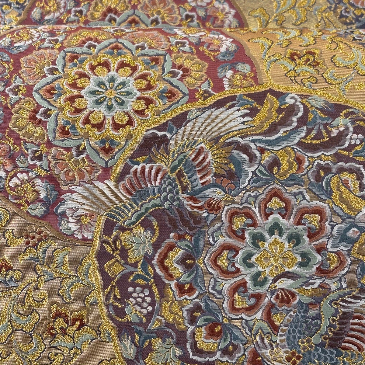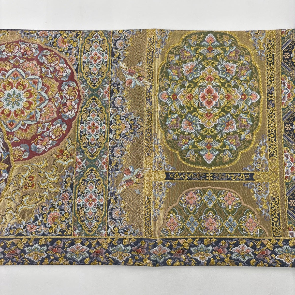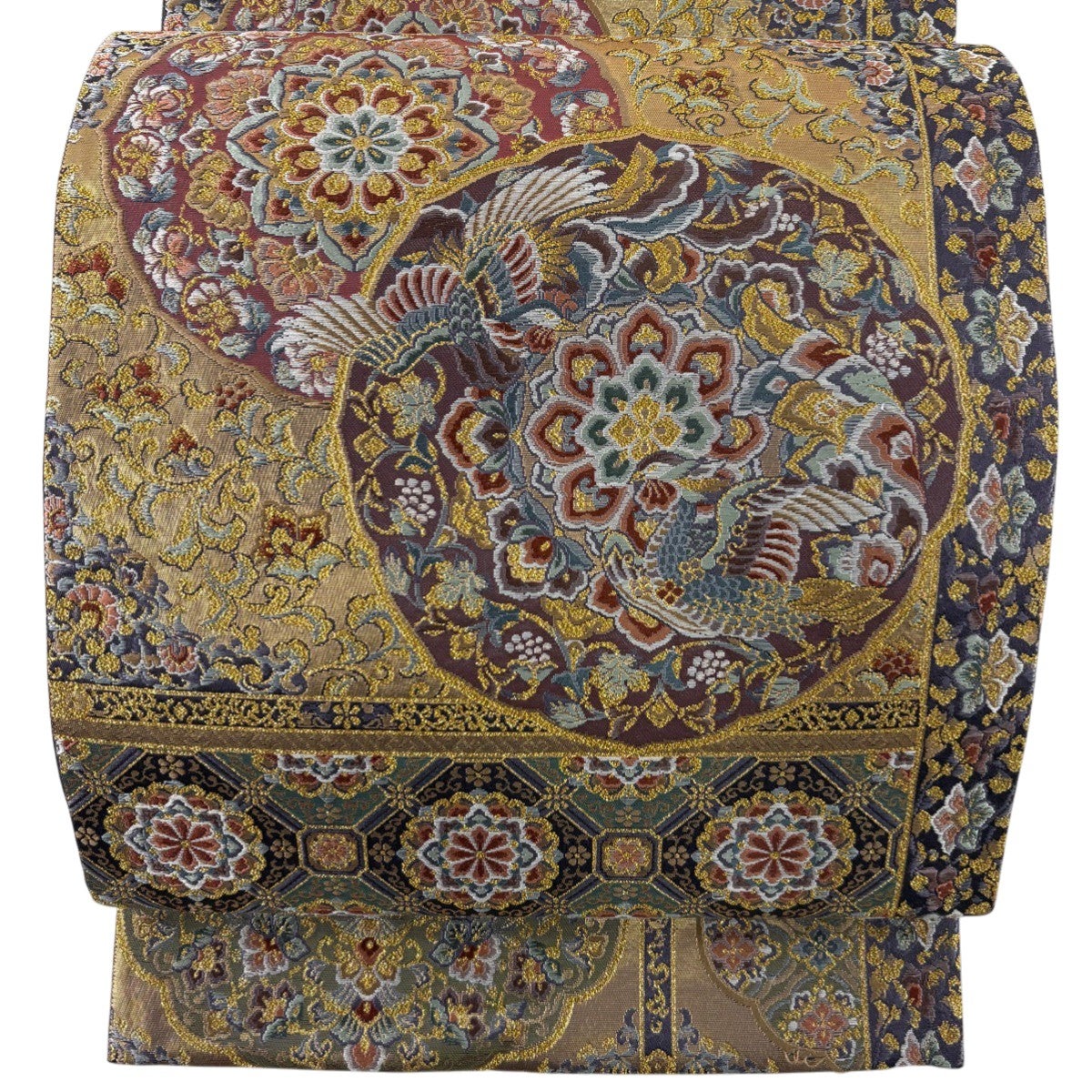 【美品】 名古屋帯 秀品 花唐草 箔 黄土色 正絹