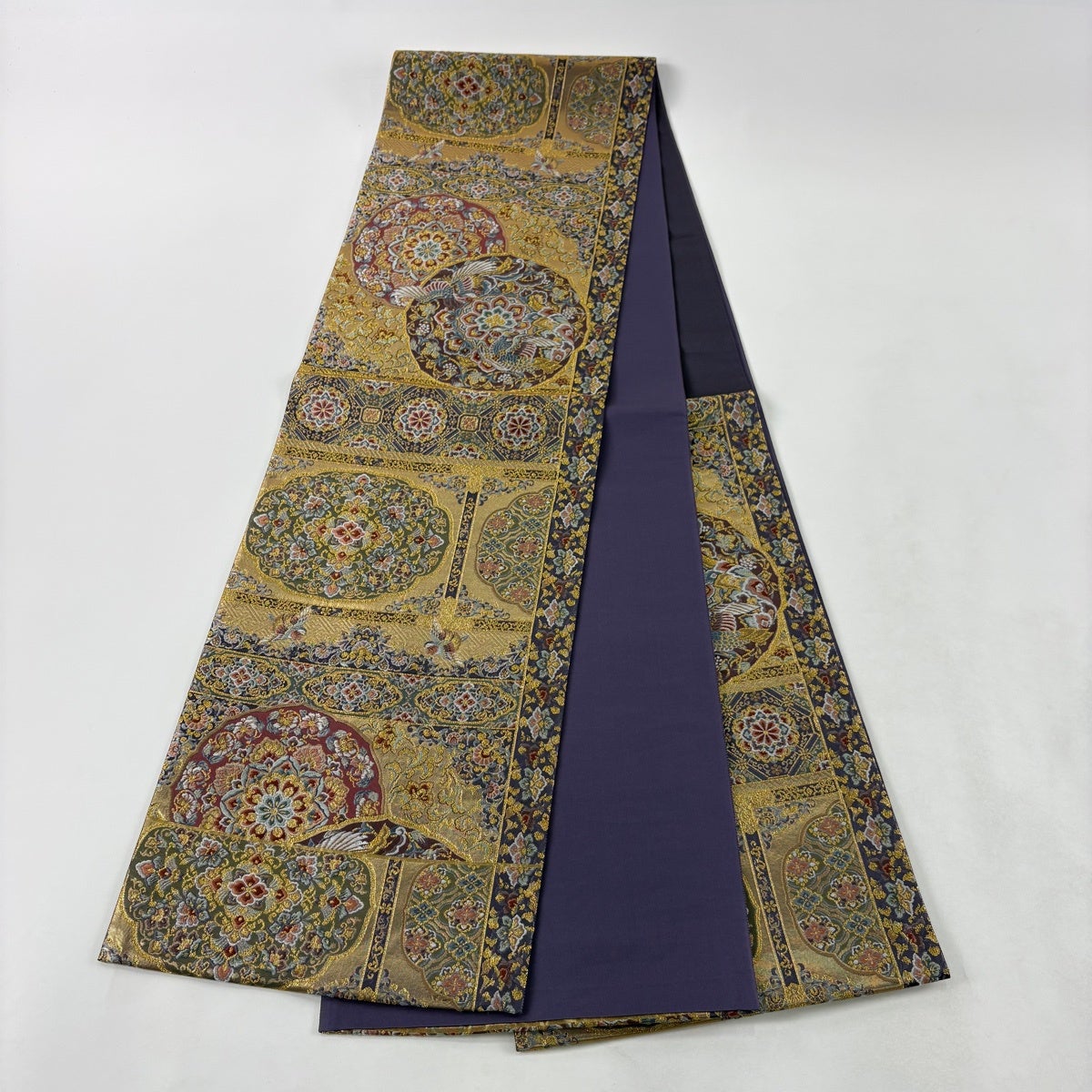 【美品】 袋帯 名品 松井青々 落款あり 関西仕立て 菊 金銀糸 箔 紫 六通 正絹