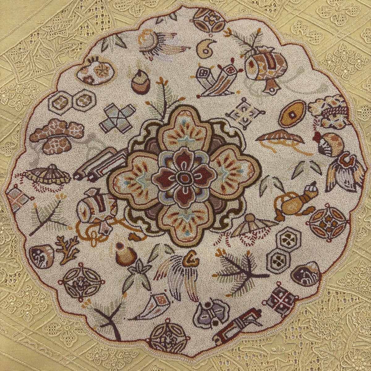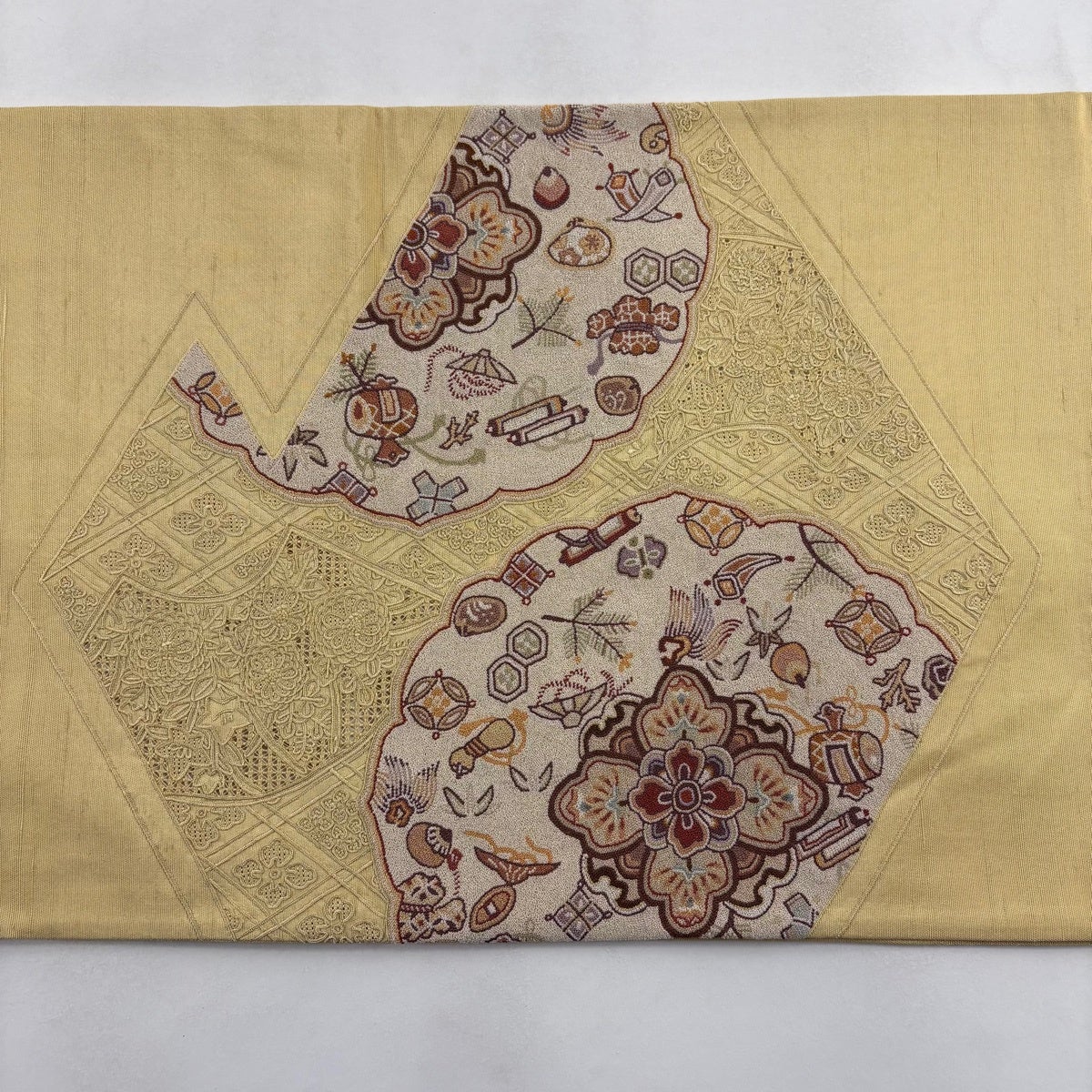 他の画像を見る 40%OFF 【美品】 名古屋帯 逸品 夏帯 八寸名古屋帯 松葉仕立て トンネル仕立て 葡萄唐草 幾何学模様 薄茶色 科 K30 当店通常価格 ¥ 176,800 ¥ 106,080 税込 在庫切れ