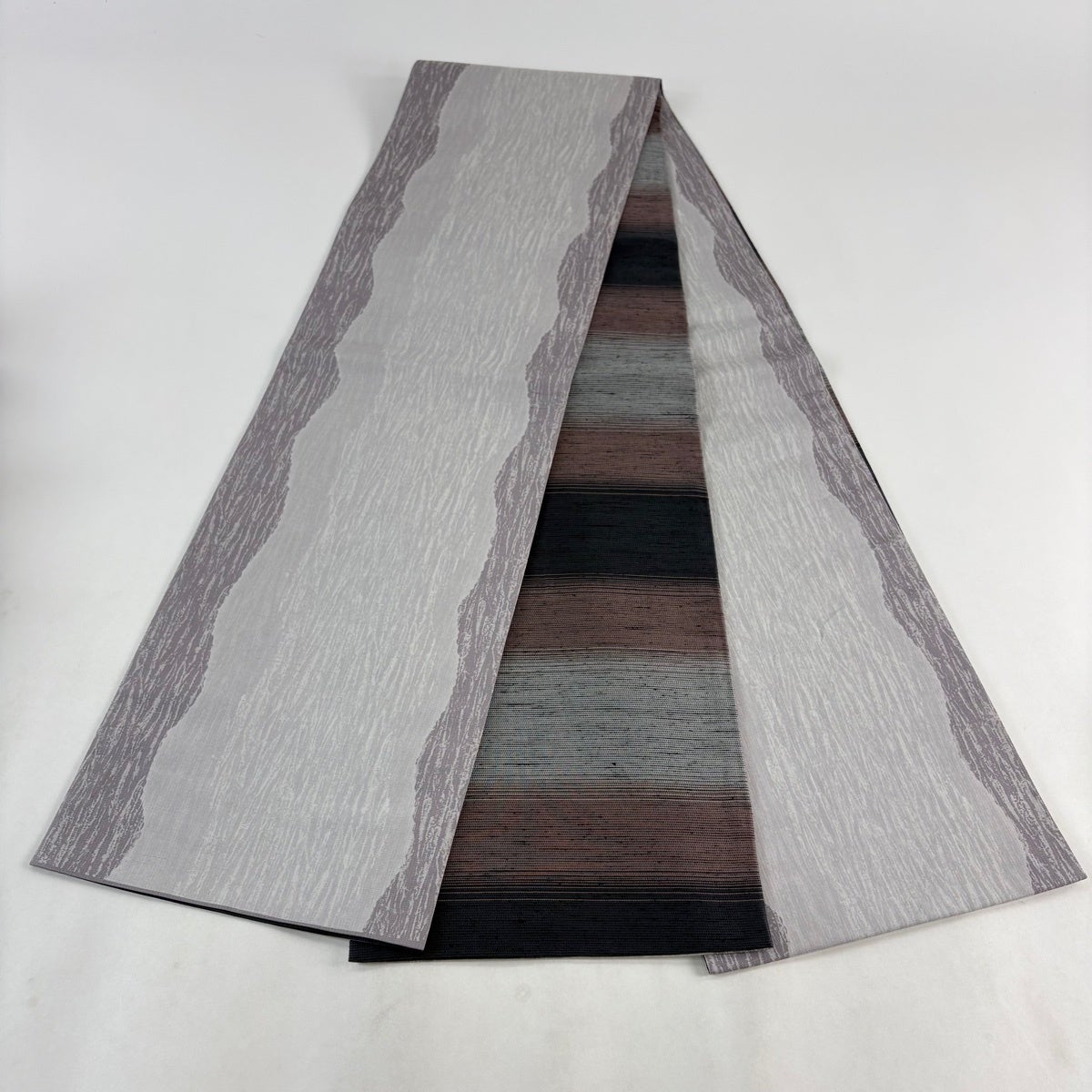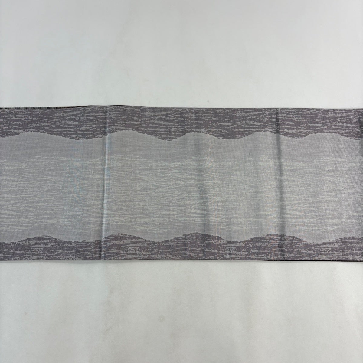 袋帯 秀品 よろけ縞 幾何学模様 灰紫 全通 正絹