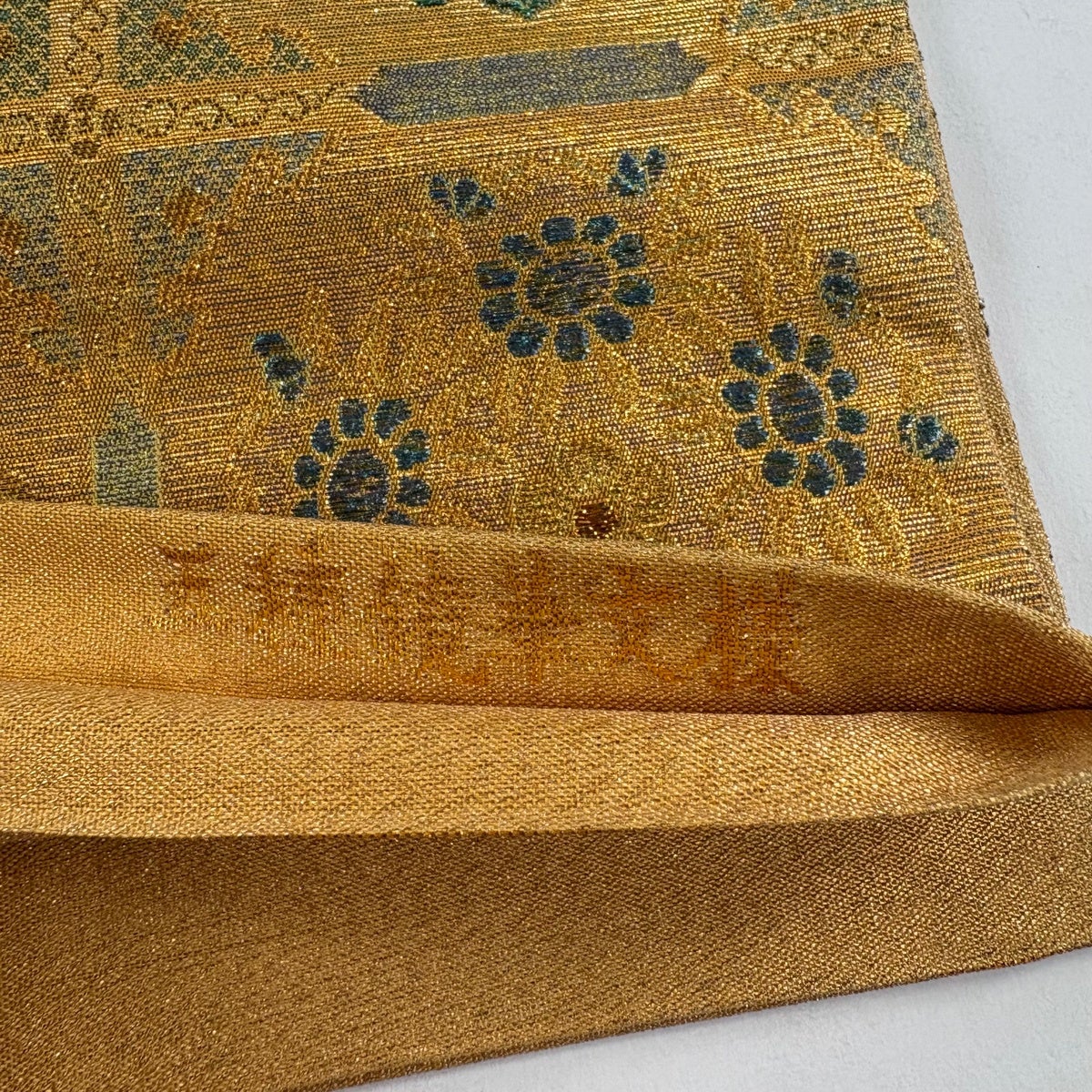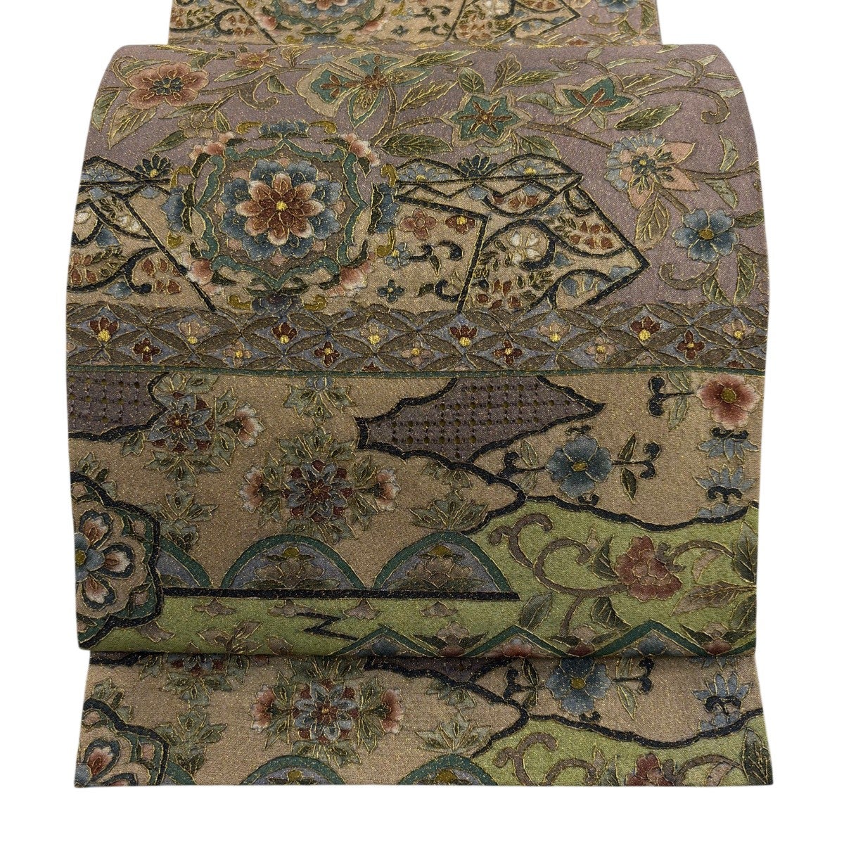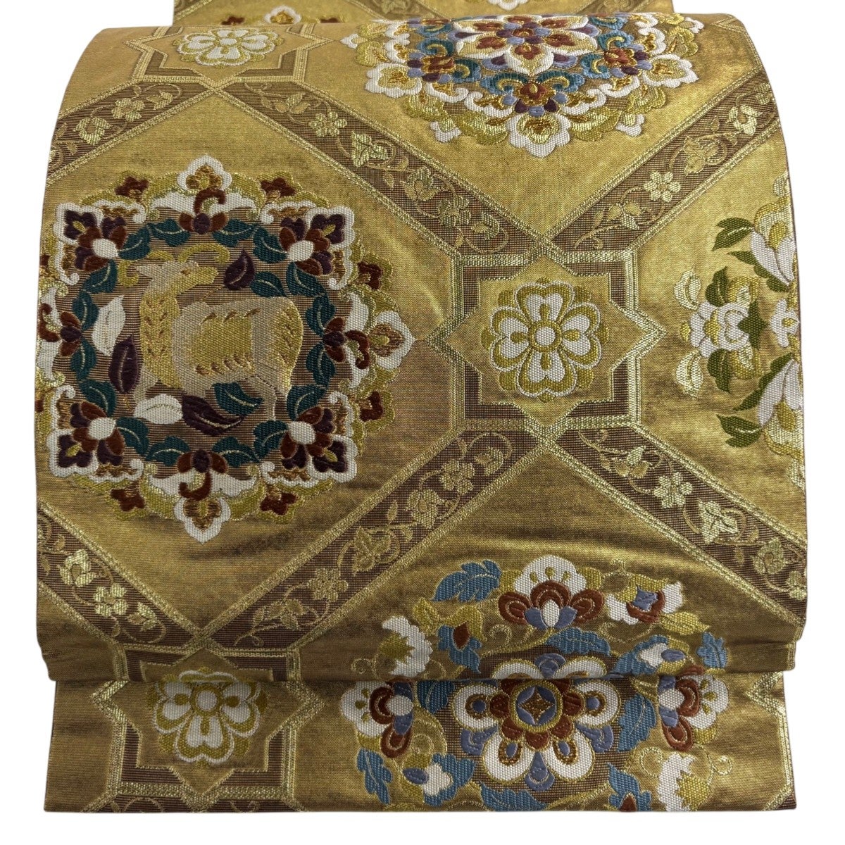 【美品】 袋帯 秀品 菱天井 草花 金糸 箔 金色 六通 正絹