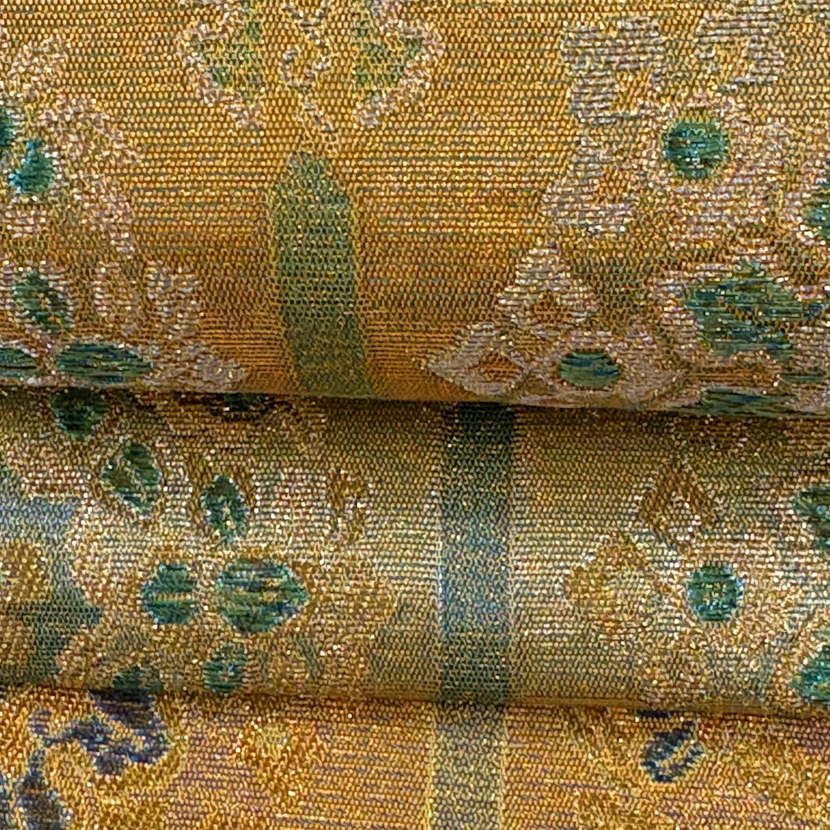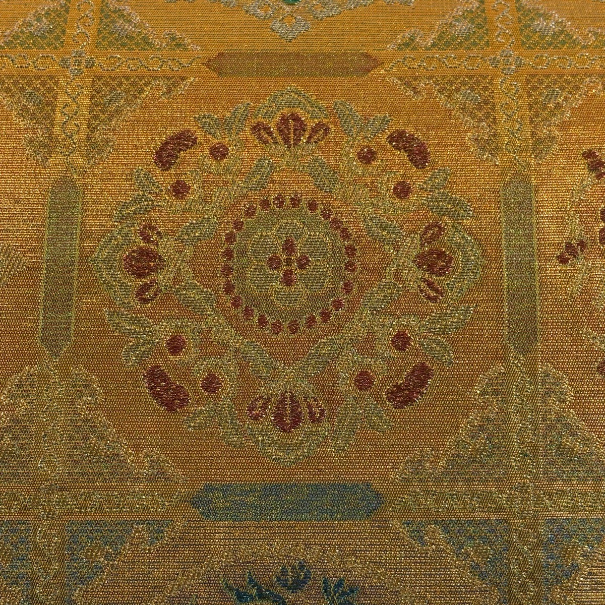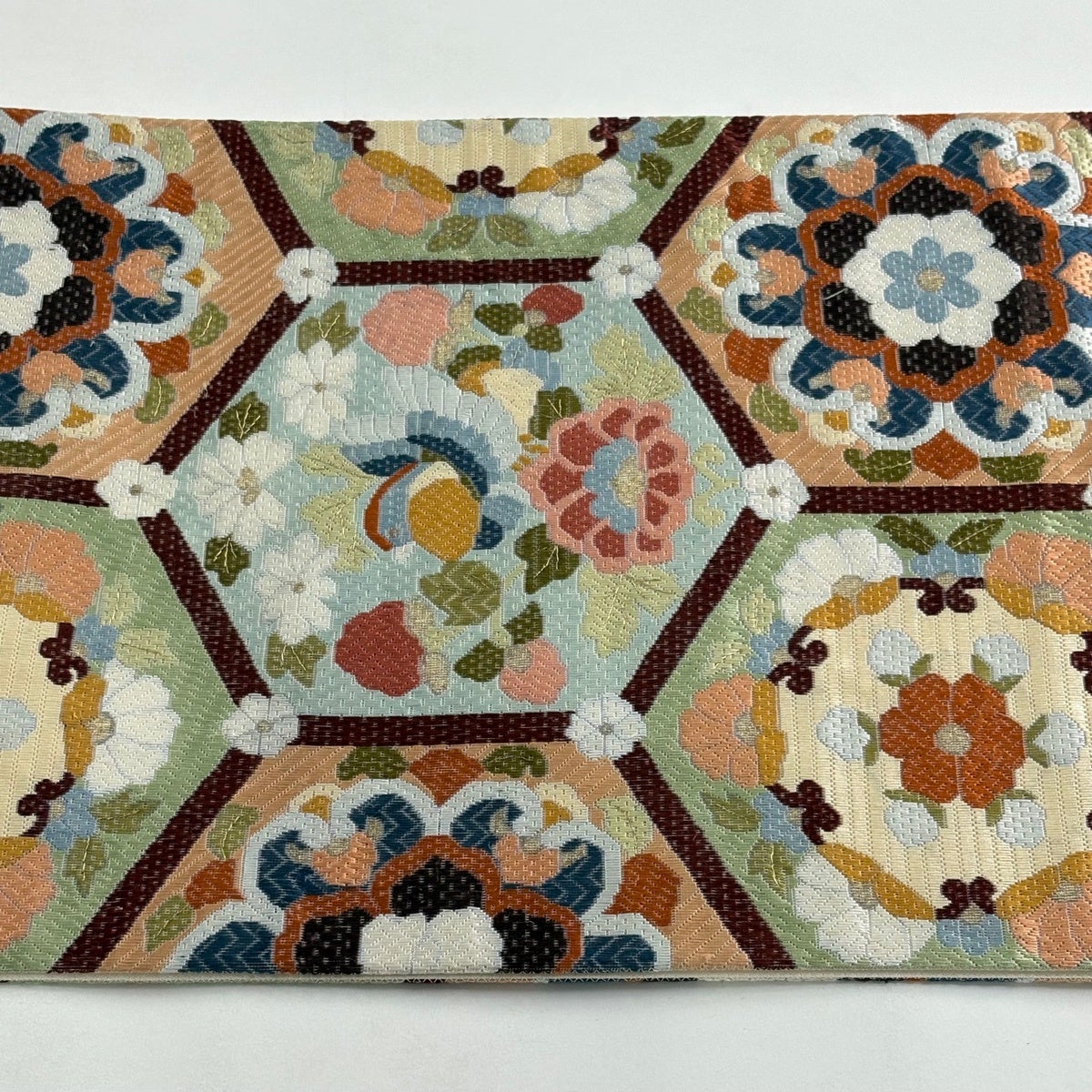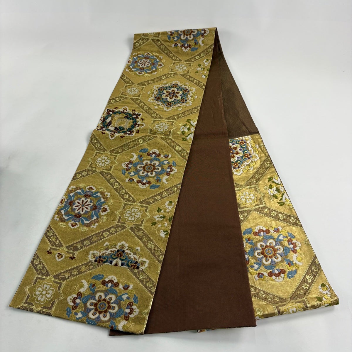 【美品】 袋帯 秀品 菱天井 草花 金糸 箔 金色 六通 正絹
