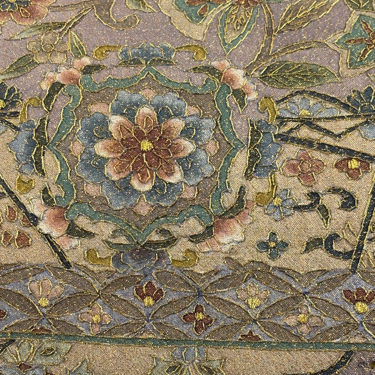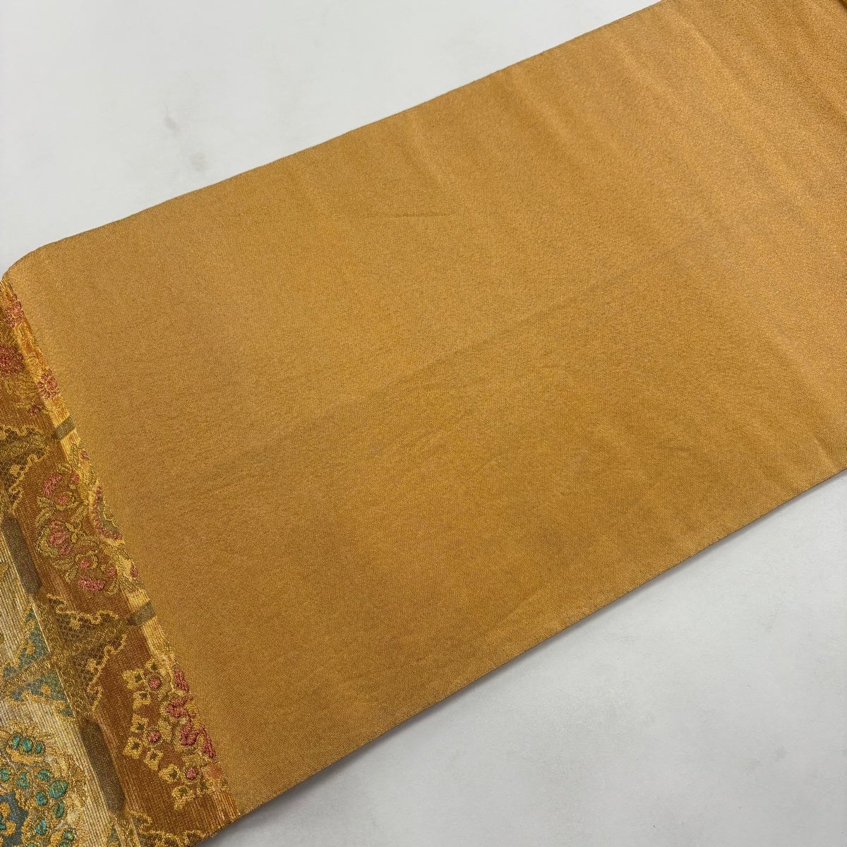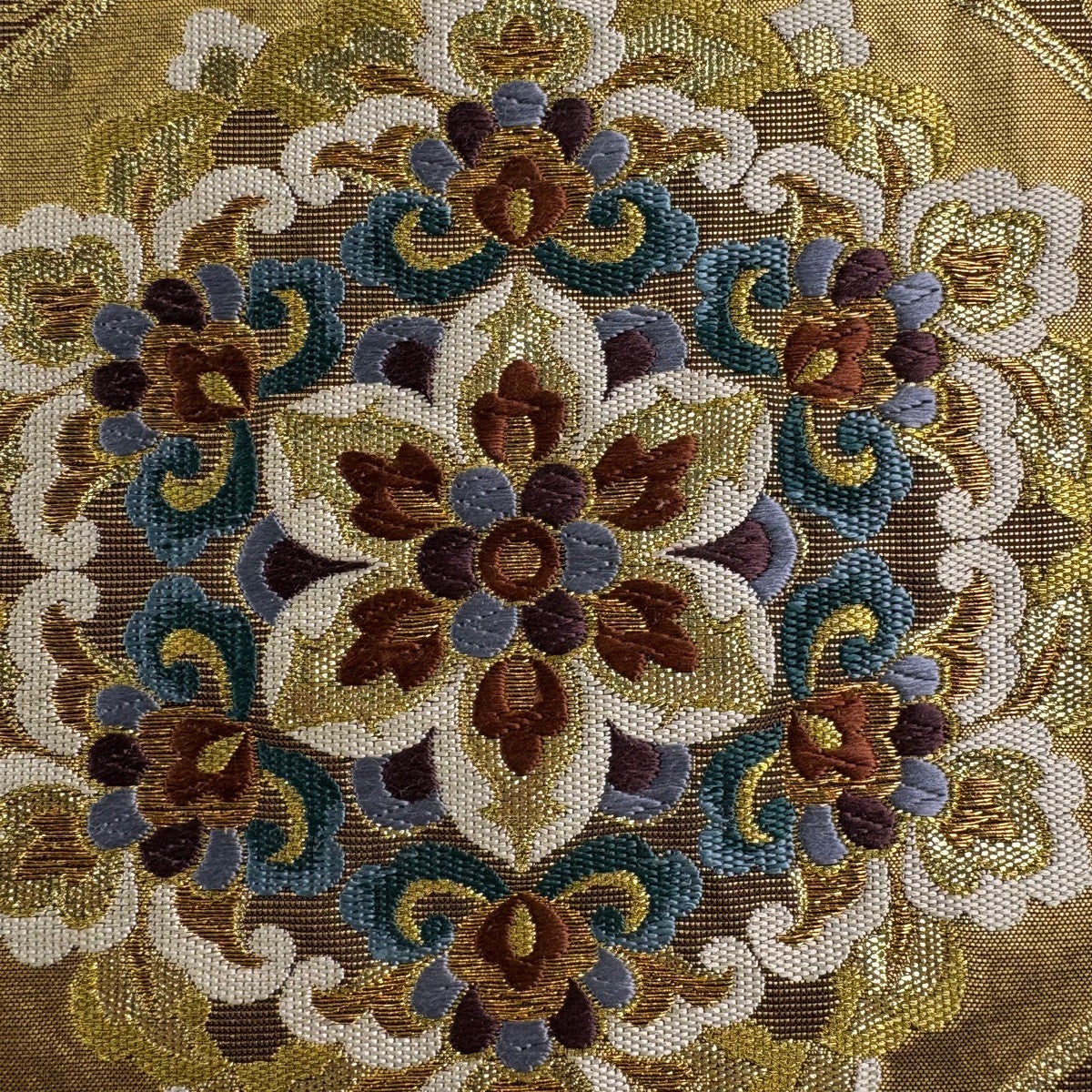 袋帯 秀品 落款あり 風薫 本金青銅箔 華文 動物 唐織 箔 金色 六通 正絹