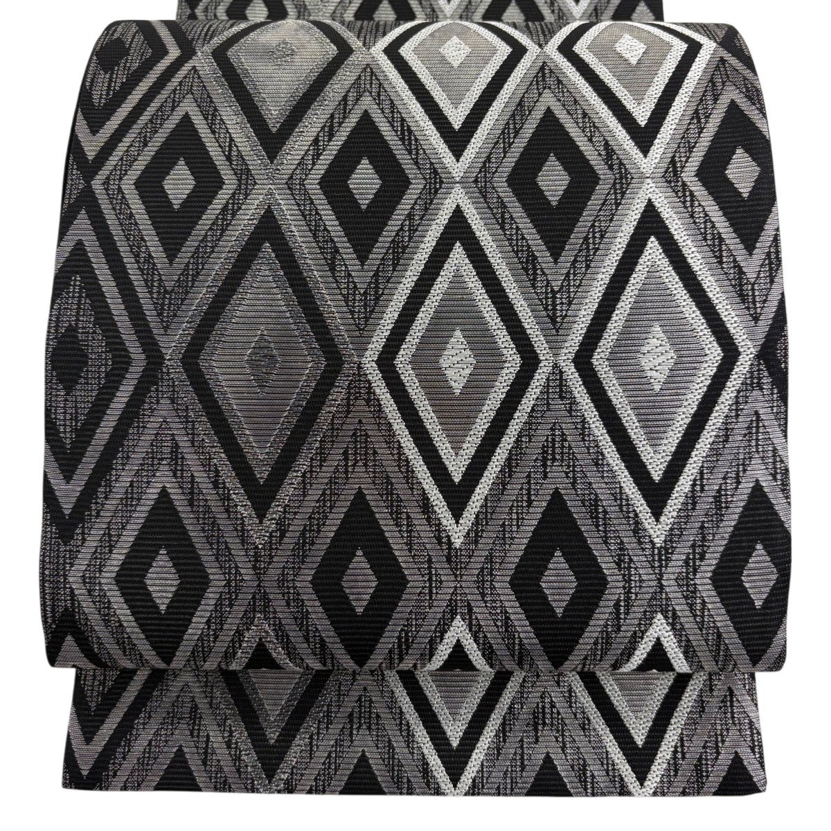 【美品】 袋帯 秀品 夏帯 菱 唐織 銀糸 黒 六通 正絹