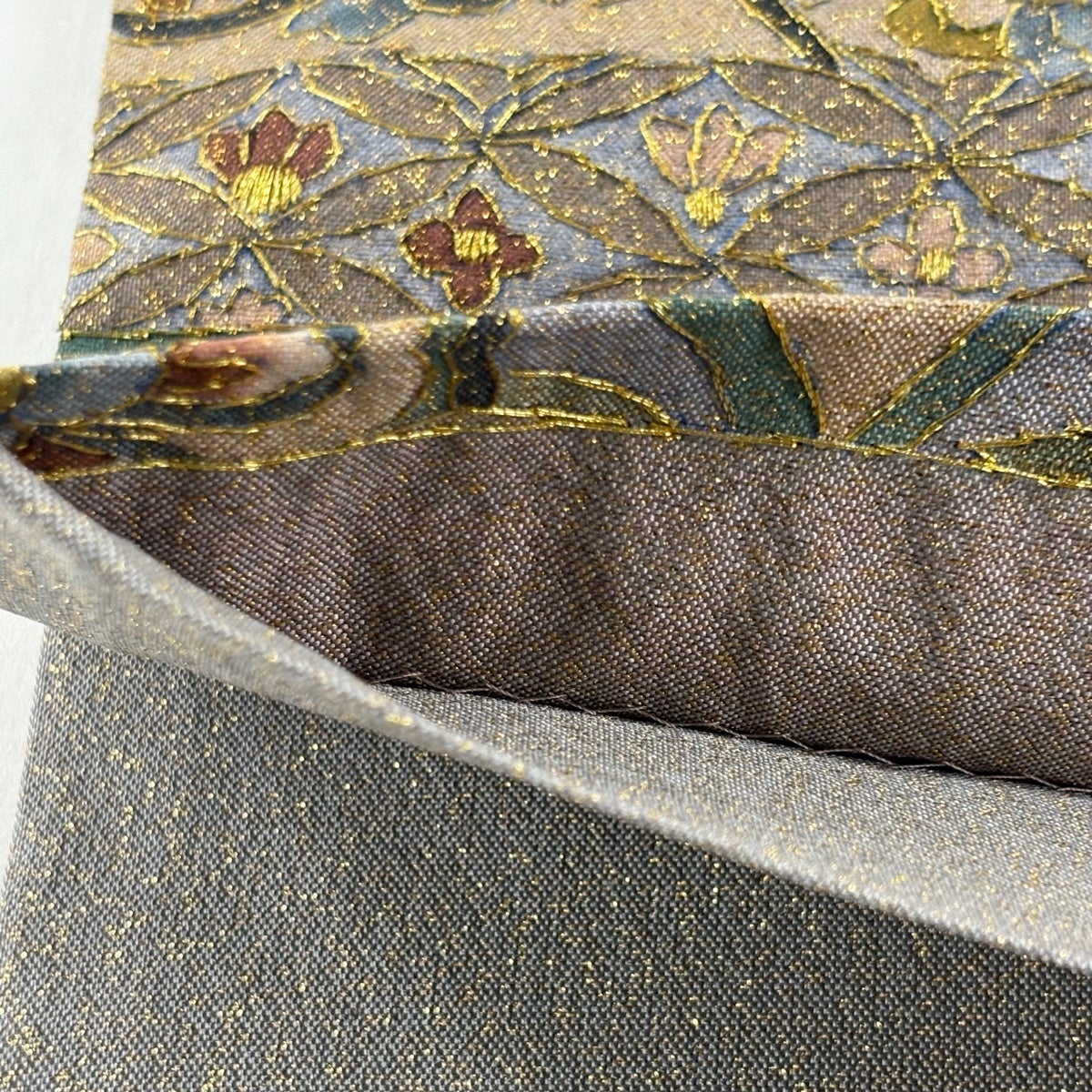【美品】 袋帯 秀品 華文 金糸 青灰色 全通 正絹