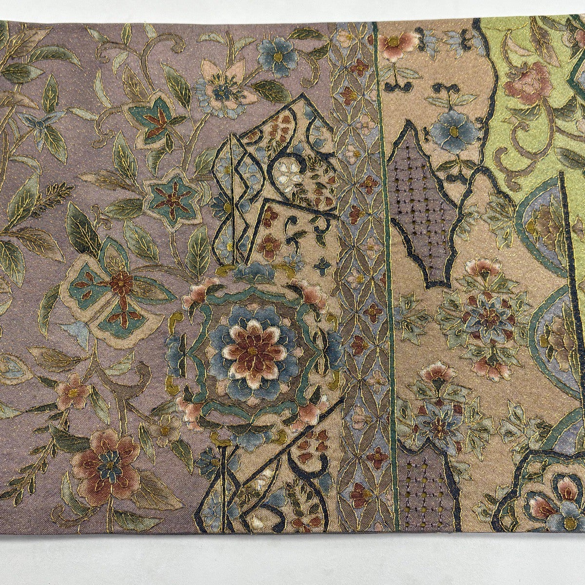 【美品】 袋帯 秀品 花唐草 金糸 茶紫 六通 正絹