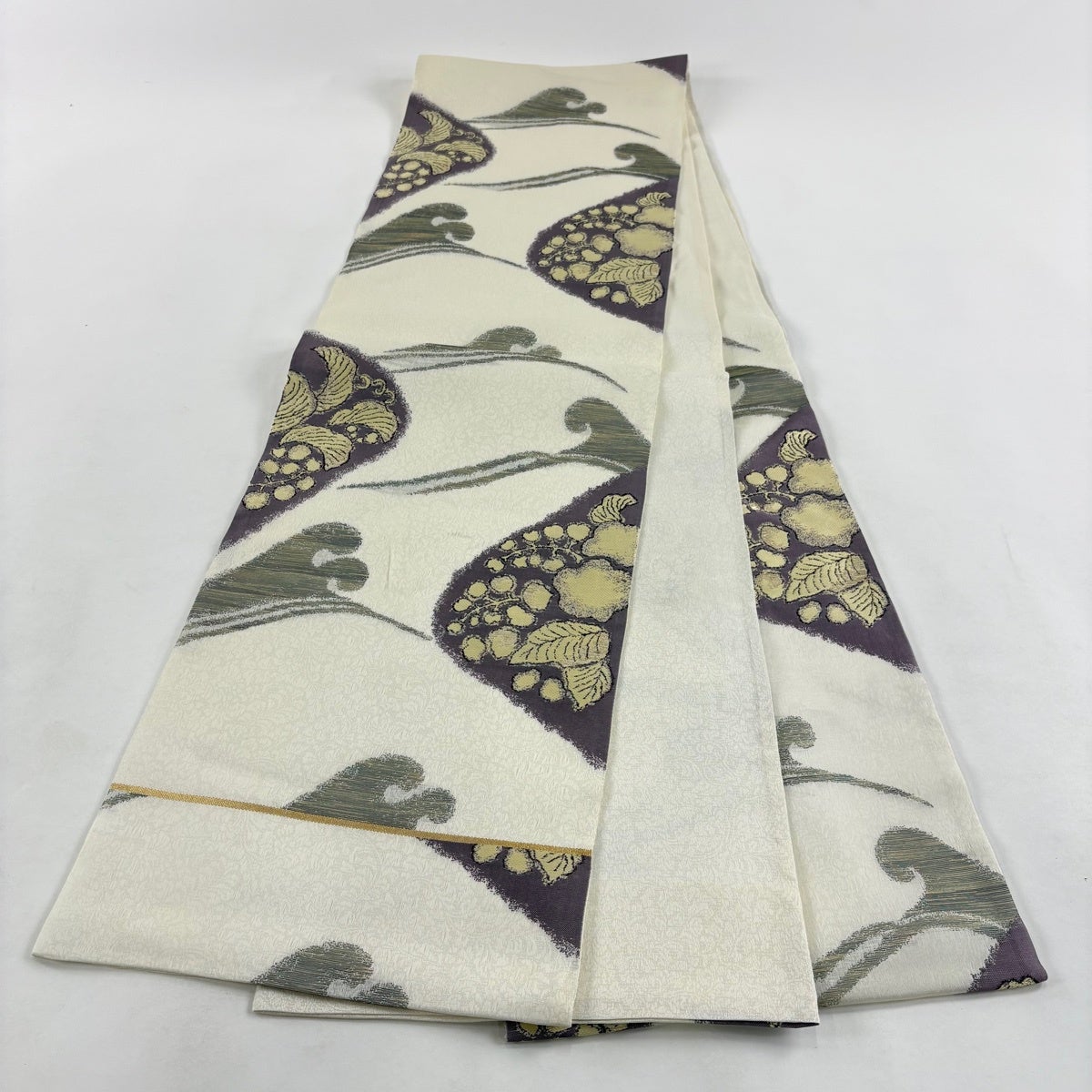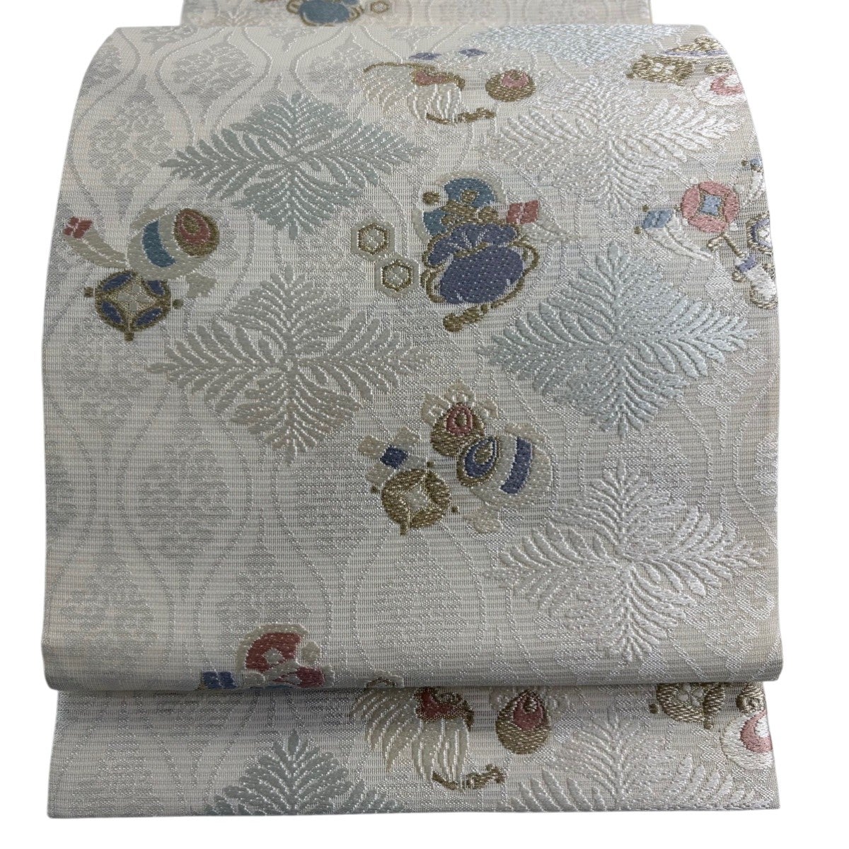 【美品】 袋帯 秀品 夏帯 宝尽くし 立涌 金糸 箔 クリーム 六通 正絹