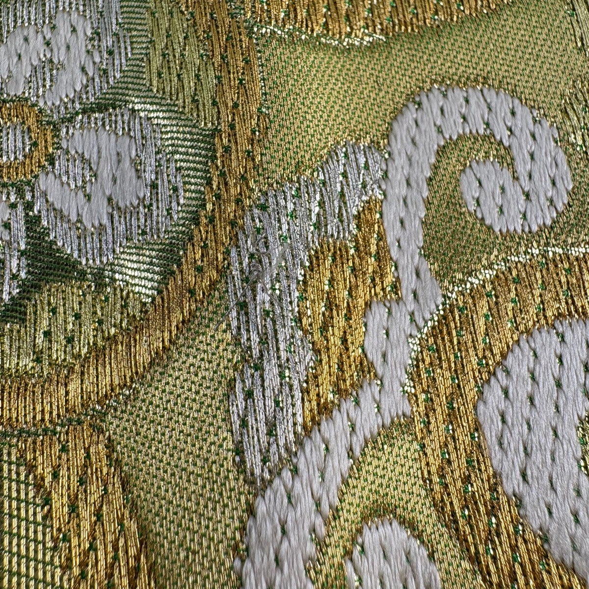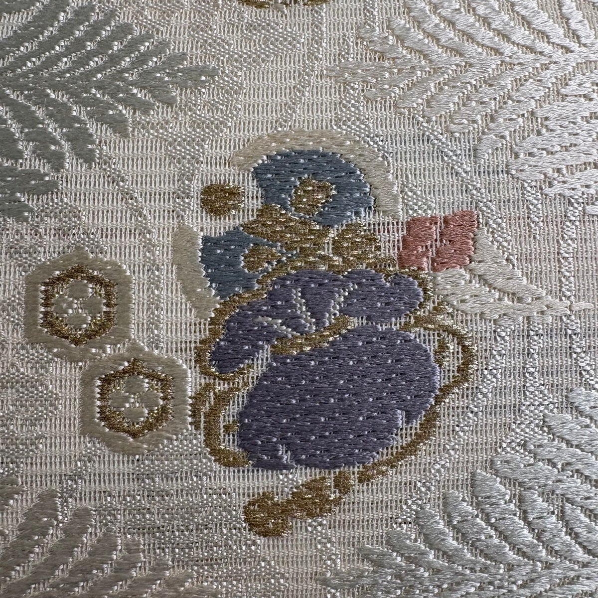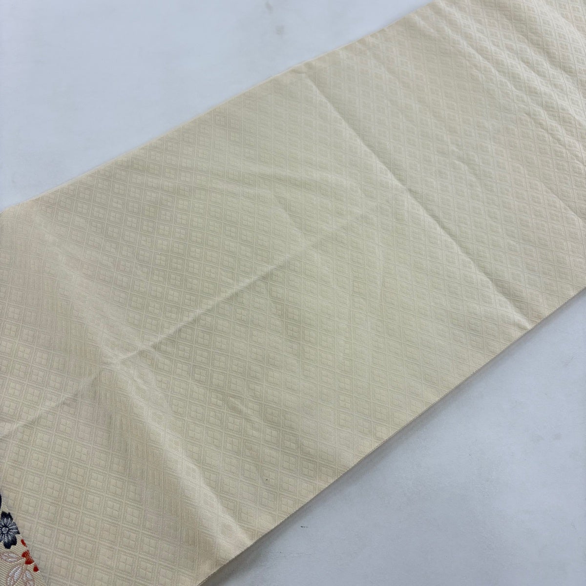 袋帯 秀品 遣宝菱映文 関西仕立て 向かい鳥 華文 金銀糸 唐織 クリーム 六通 正絹