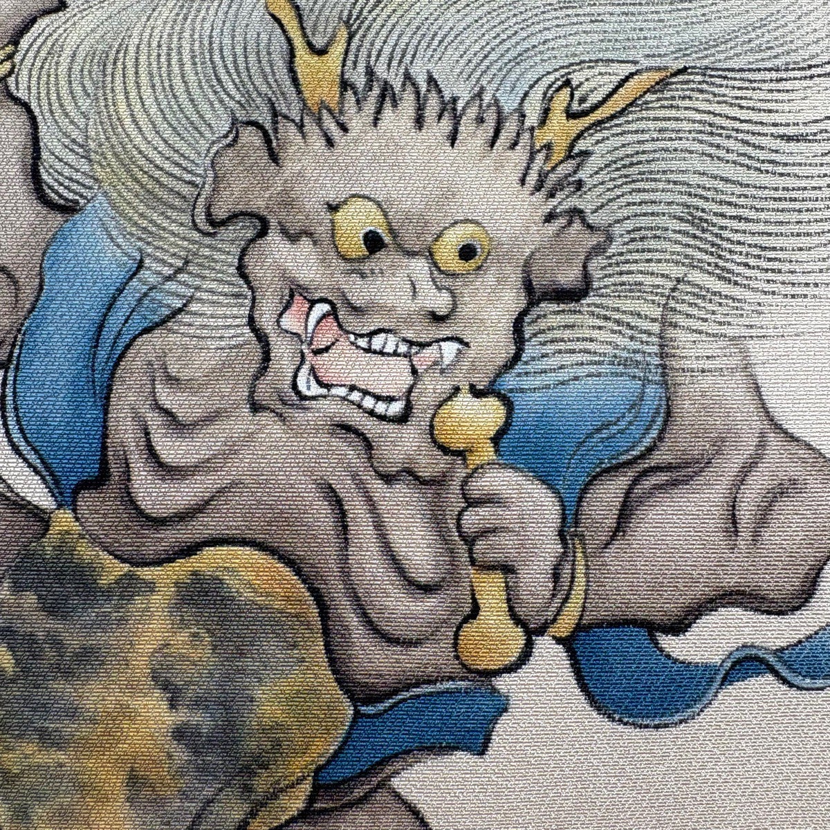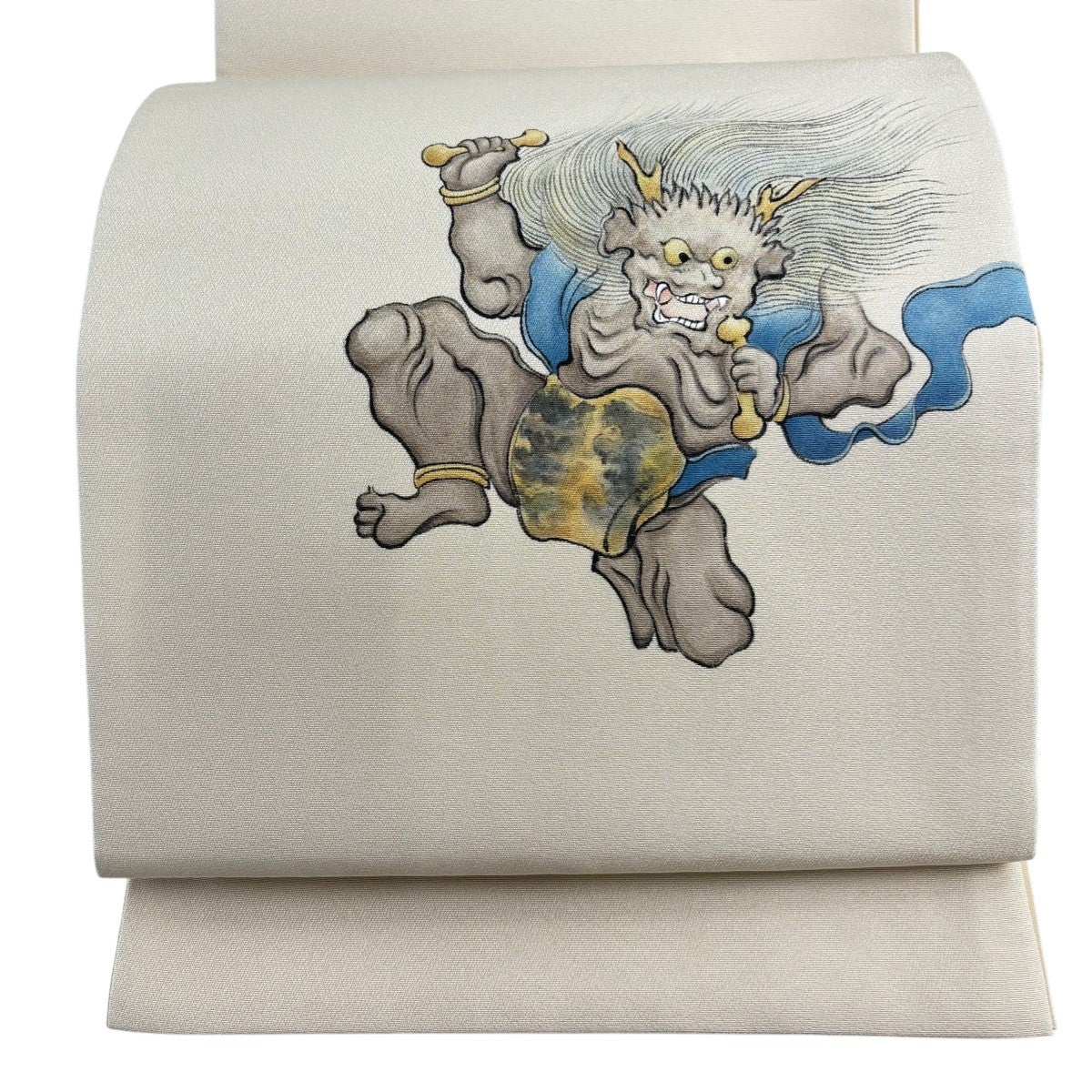 【美品】 袋帯 秀品 落款あり 雷神 ベージュ お太鼓柄 正絹