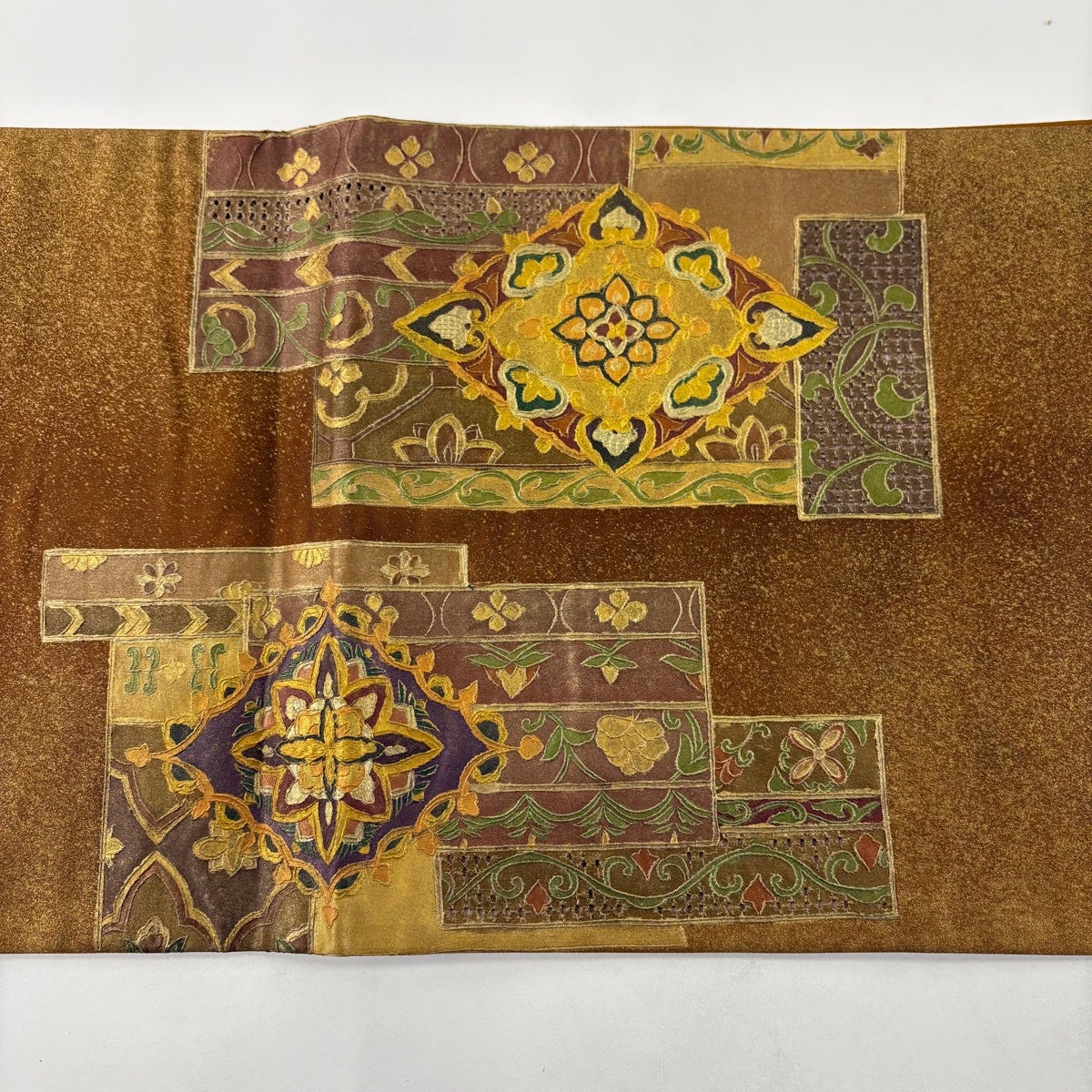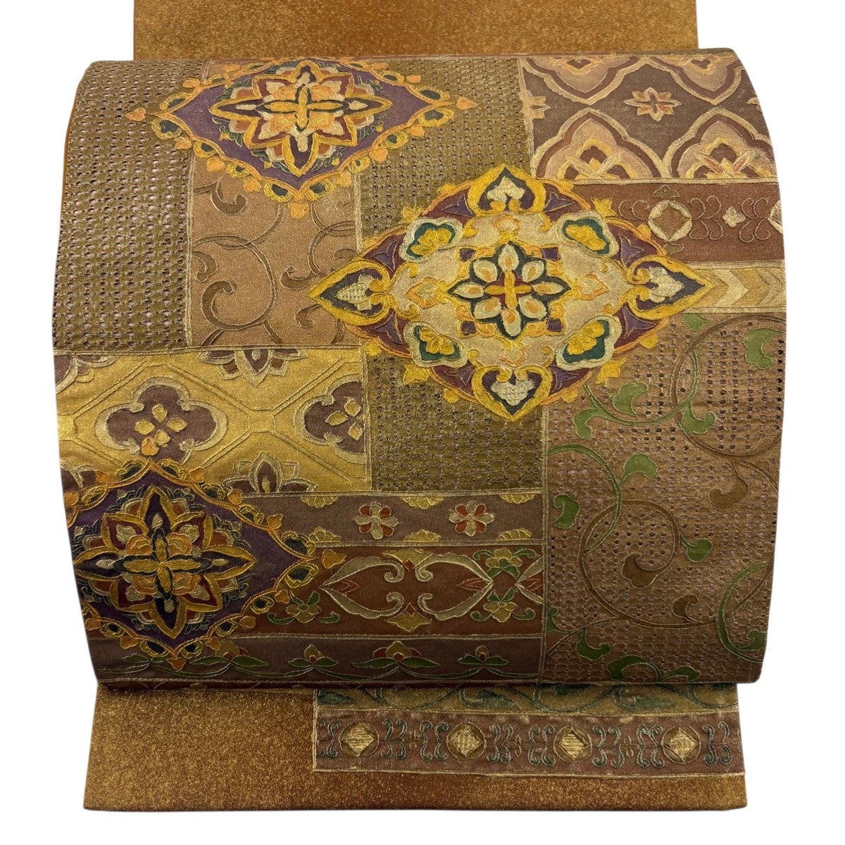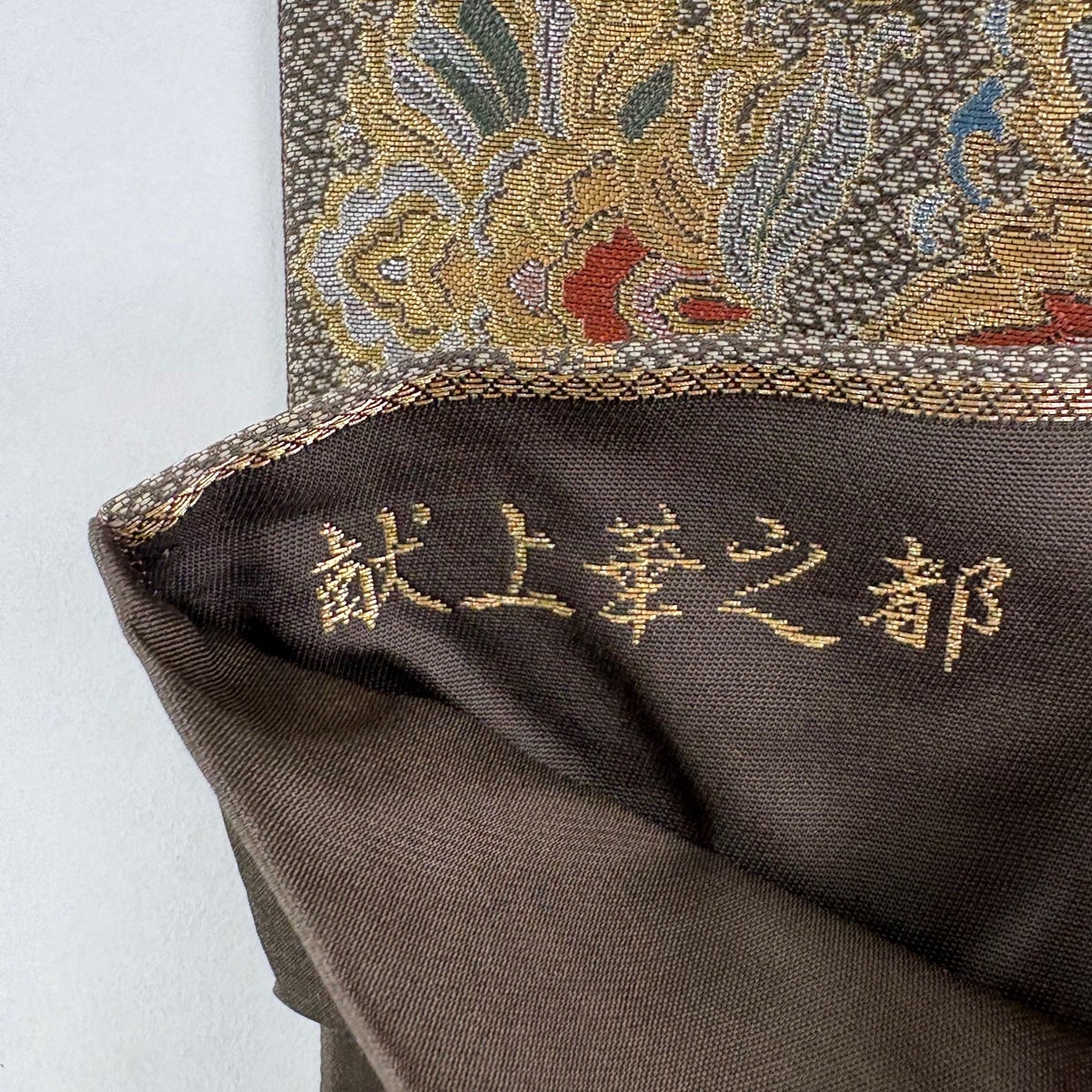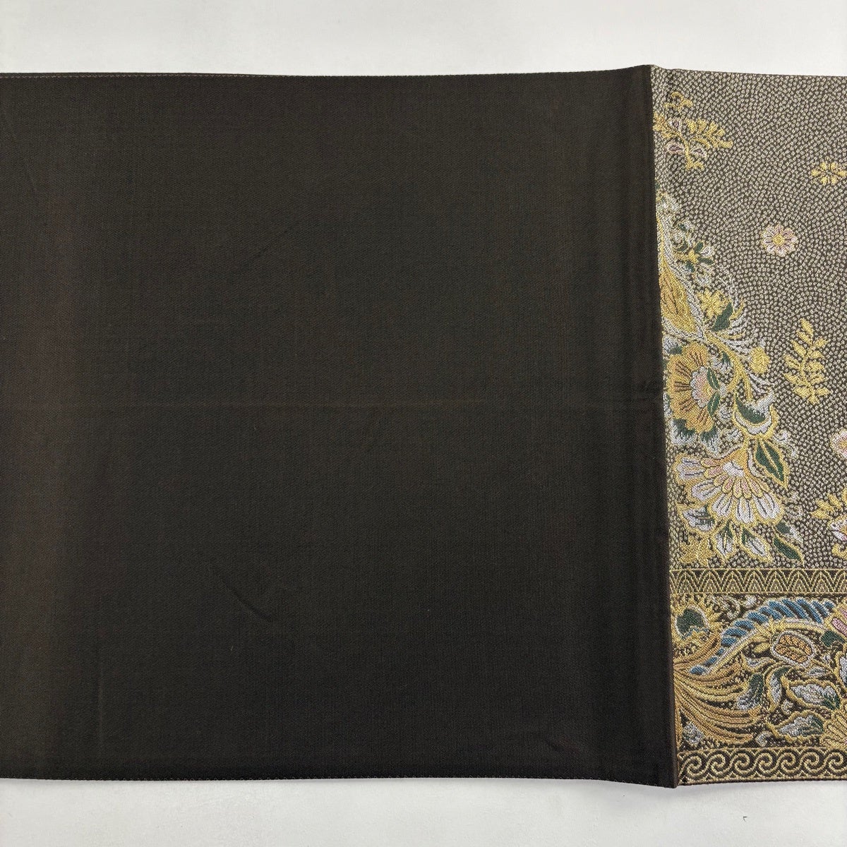 【美品】 袋帯 秀品 草花 唐織 金糸 茶色 六通 正絹