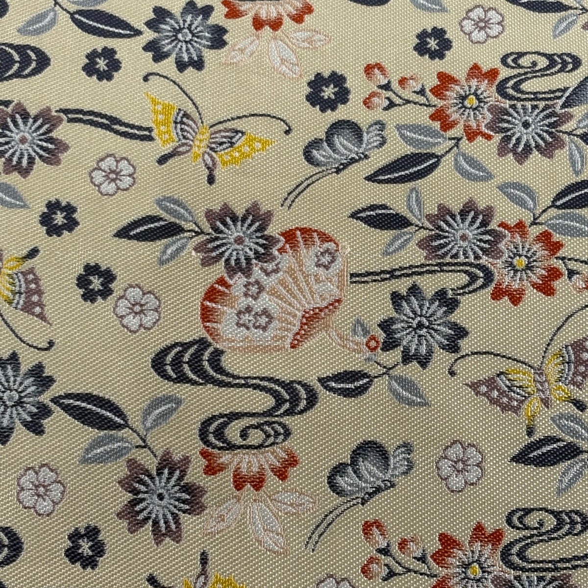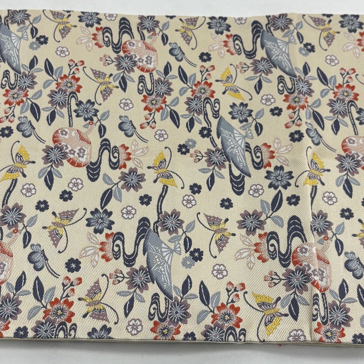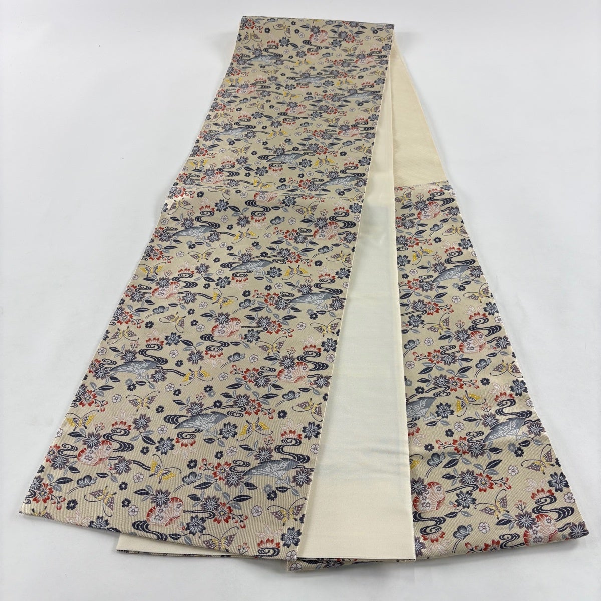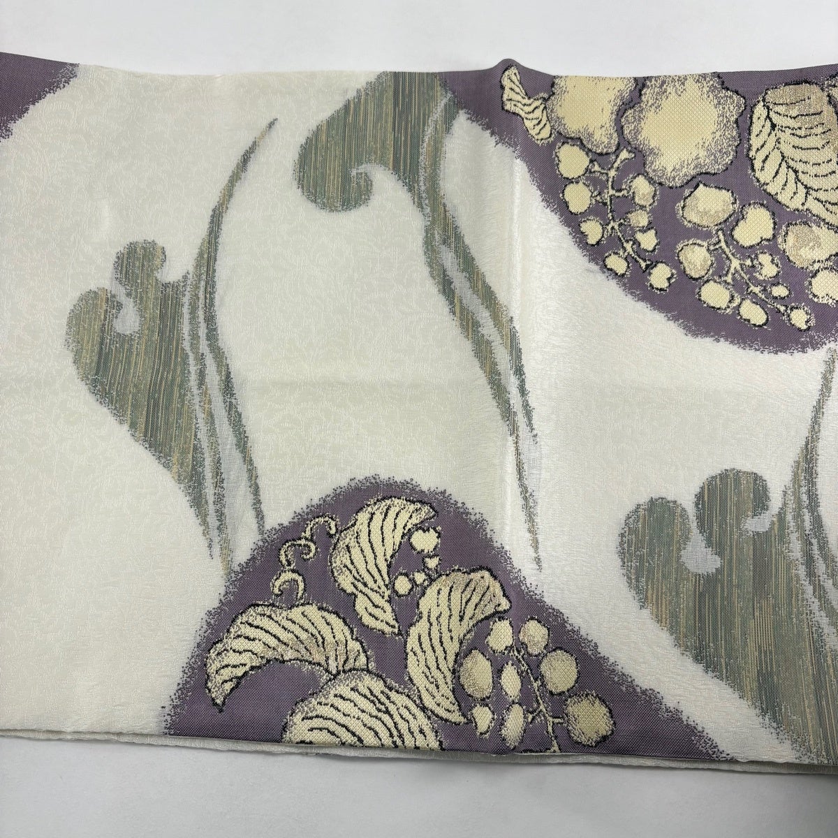 【美品】 袋帯 秀品 枝花 金銀糸 唐織 クリーム 六通 正絹