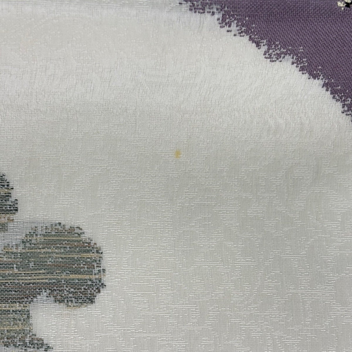【美品】 袋帯 秀品 落款あり 雫 箔 金彩 灰紫 お太鼓柄 正絹