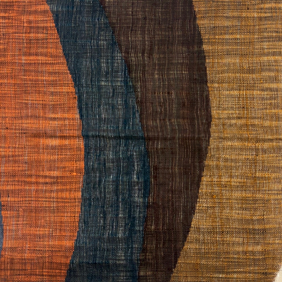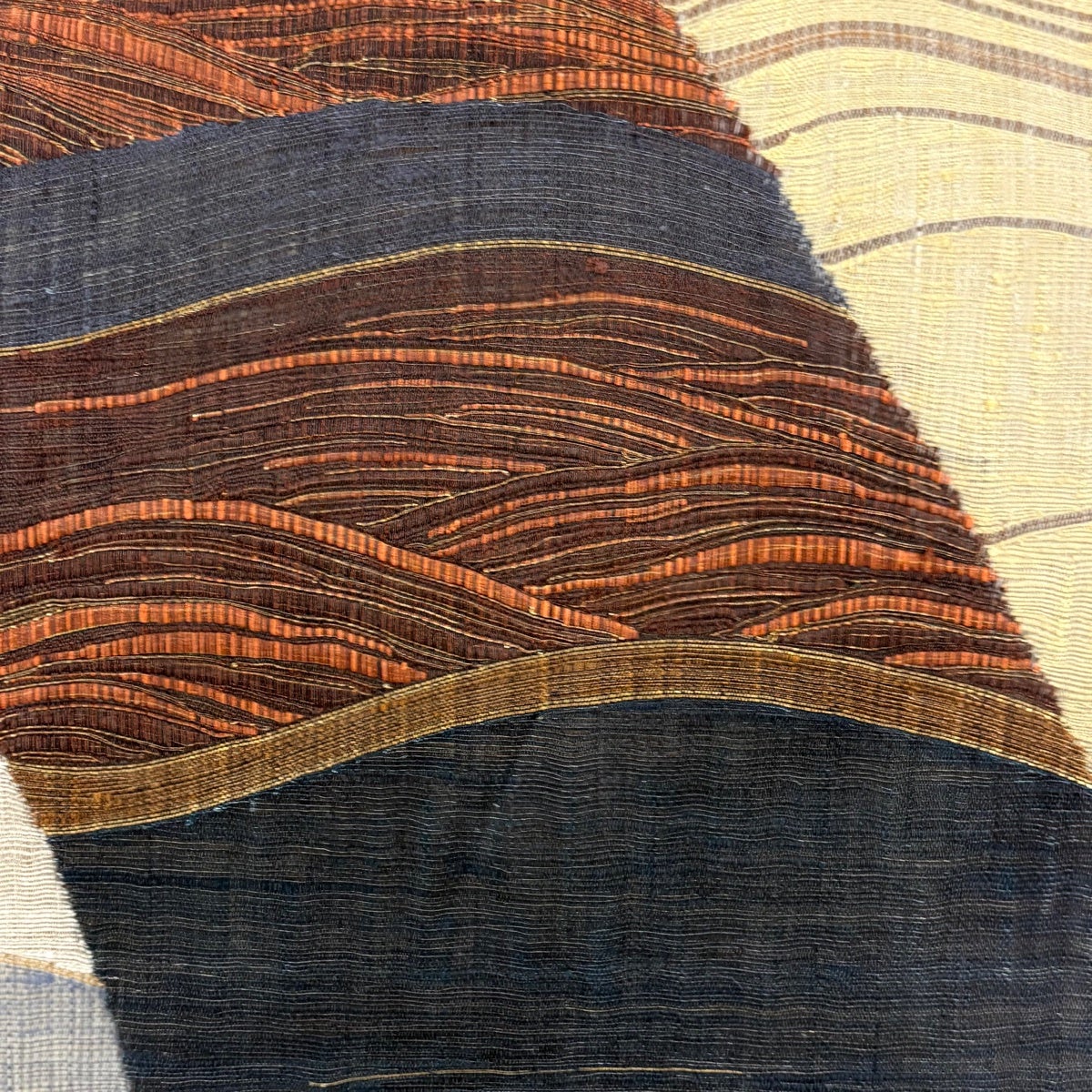 【美品】 袋帯 秀品 よろけ縞 幾何学模様 墨色 全通 正絹
