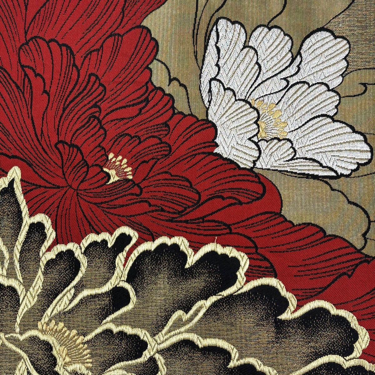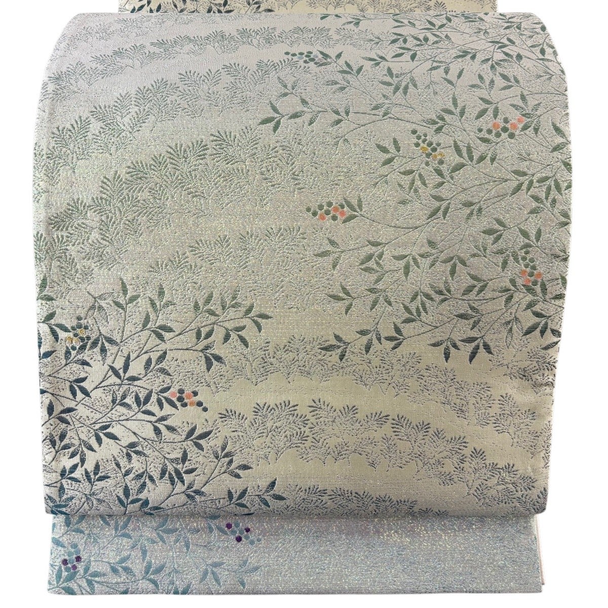 袋帯 秀品 草花 椿 金銀糸 箔 銀色 六通 正絹