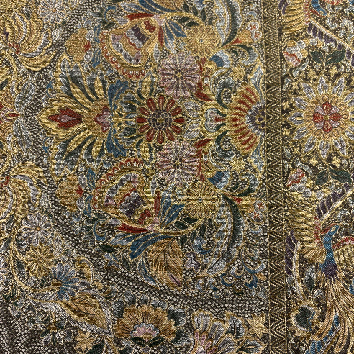 袋帯 秀品 関西仕立て 笠松 草花 唐織 金銀糸 黒 六通 正絹