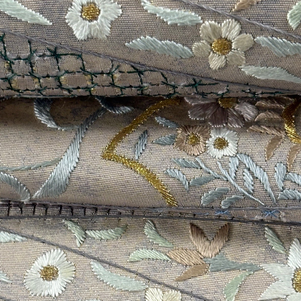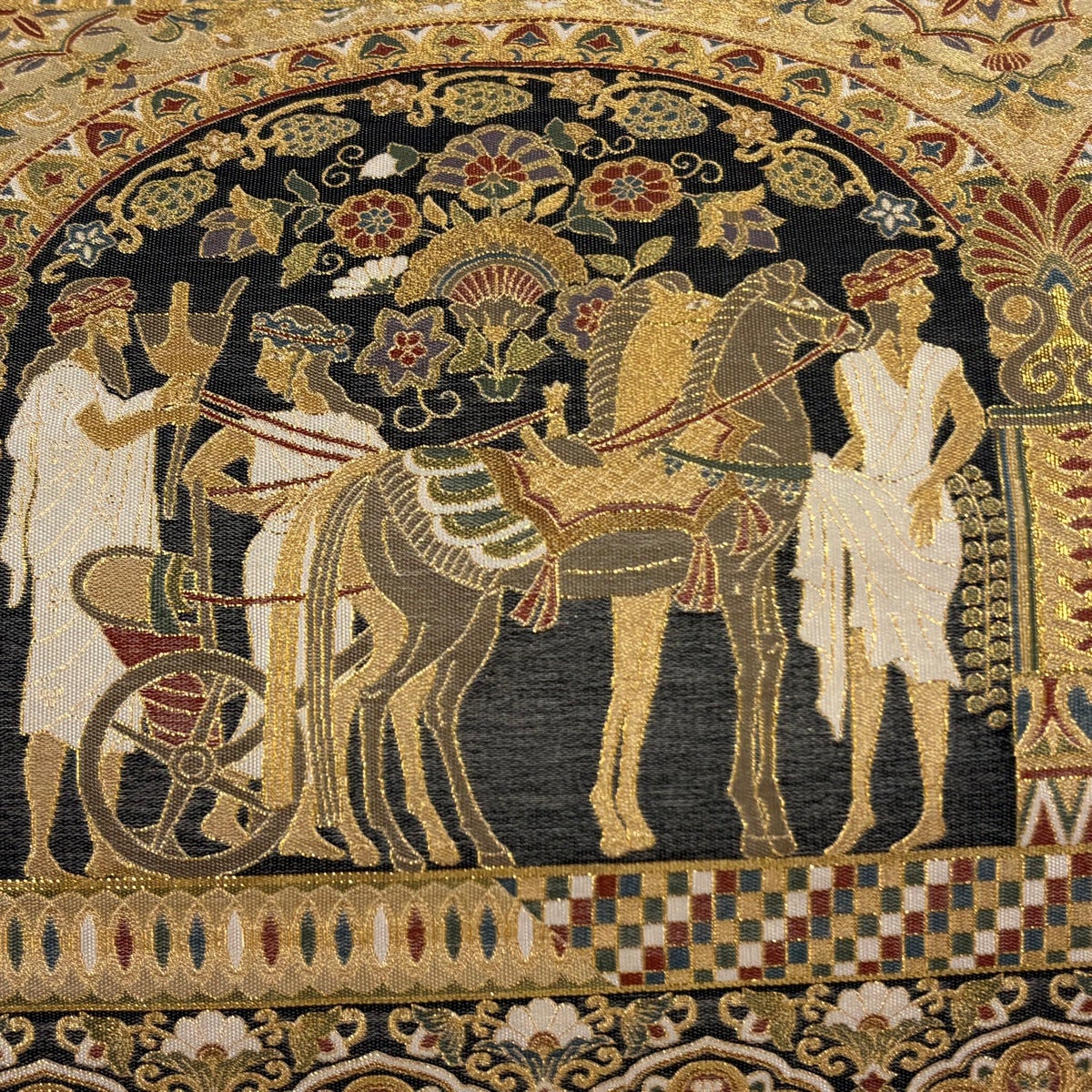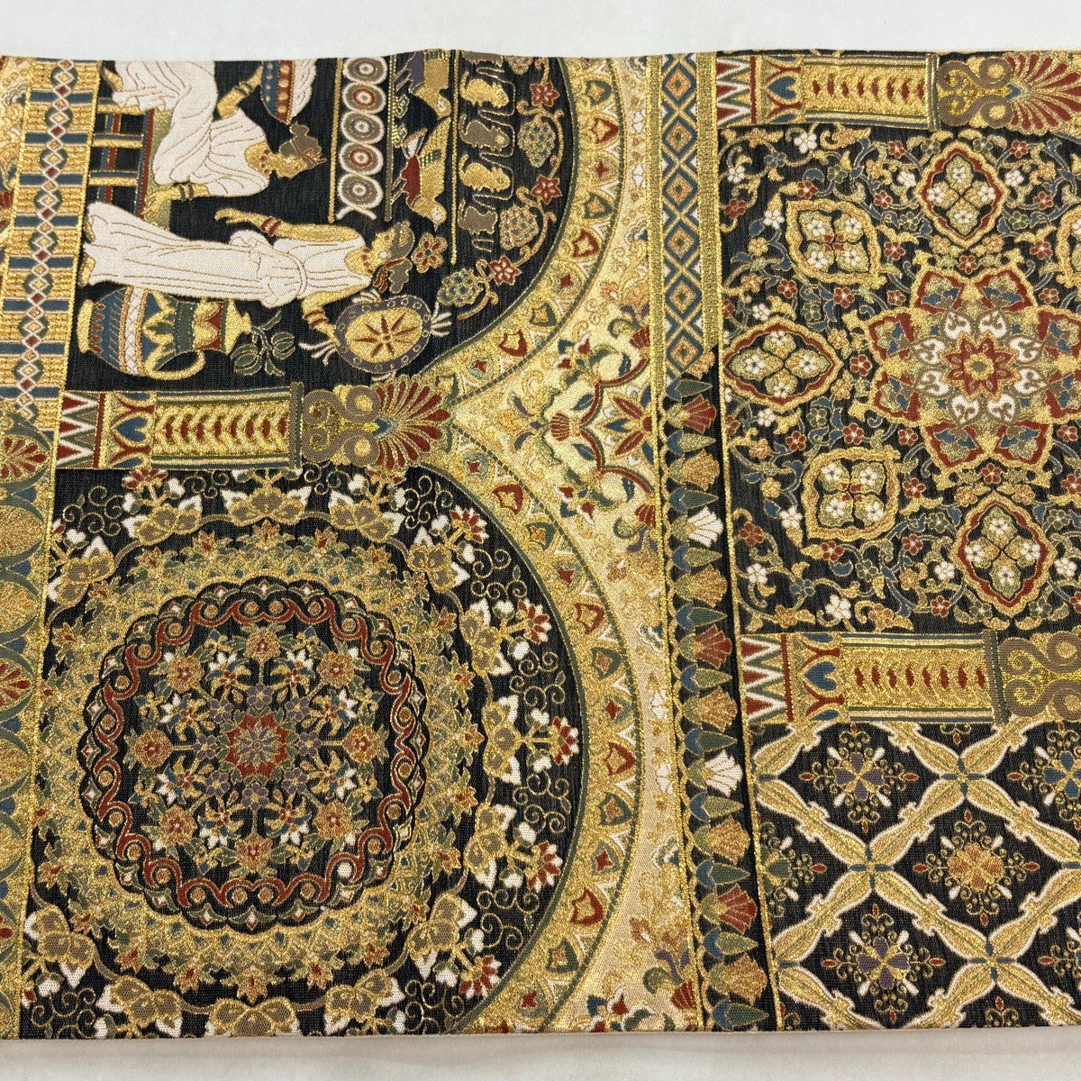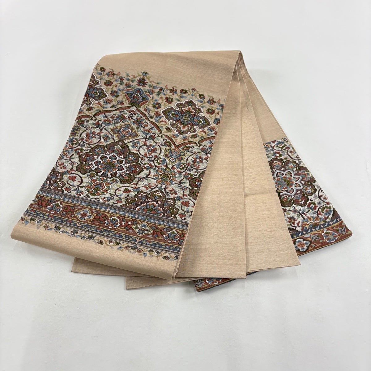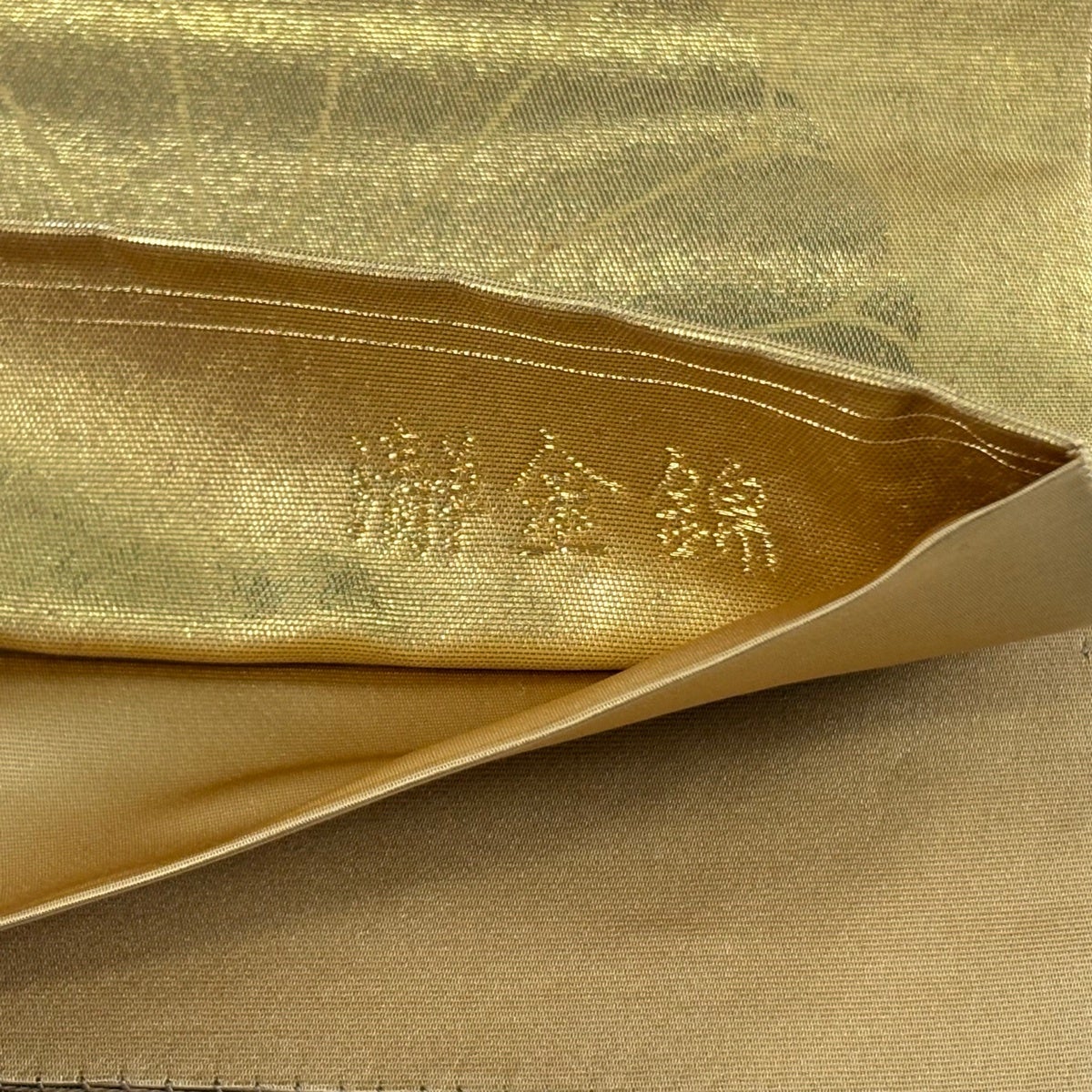 袋帯 逸品 華文 花唐草 刺繍 金糸 ベージュ 全通 正絹